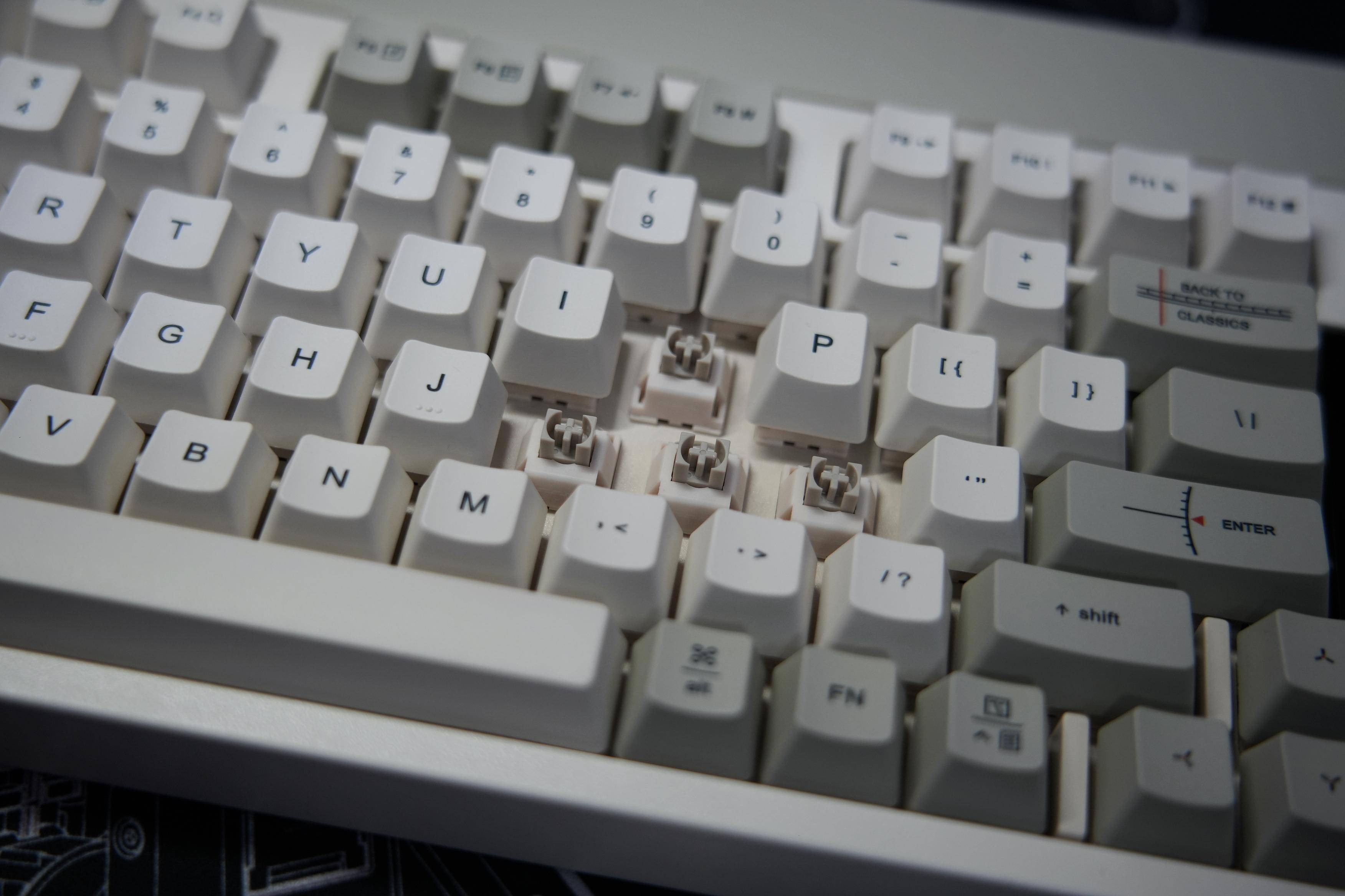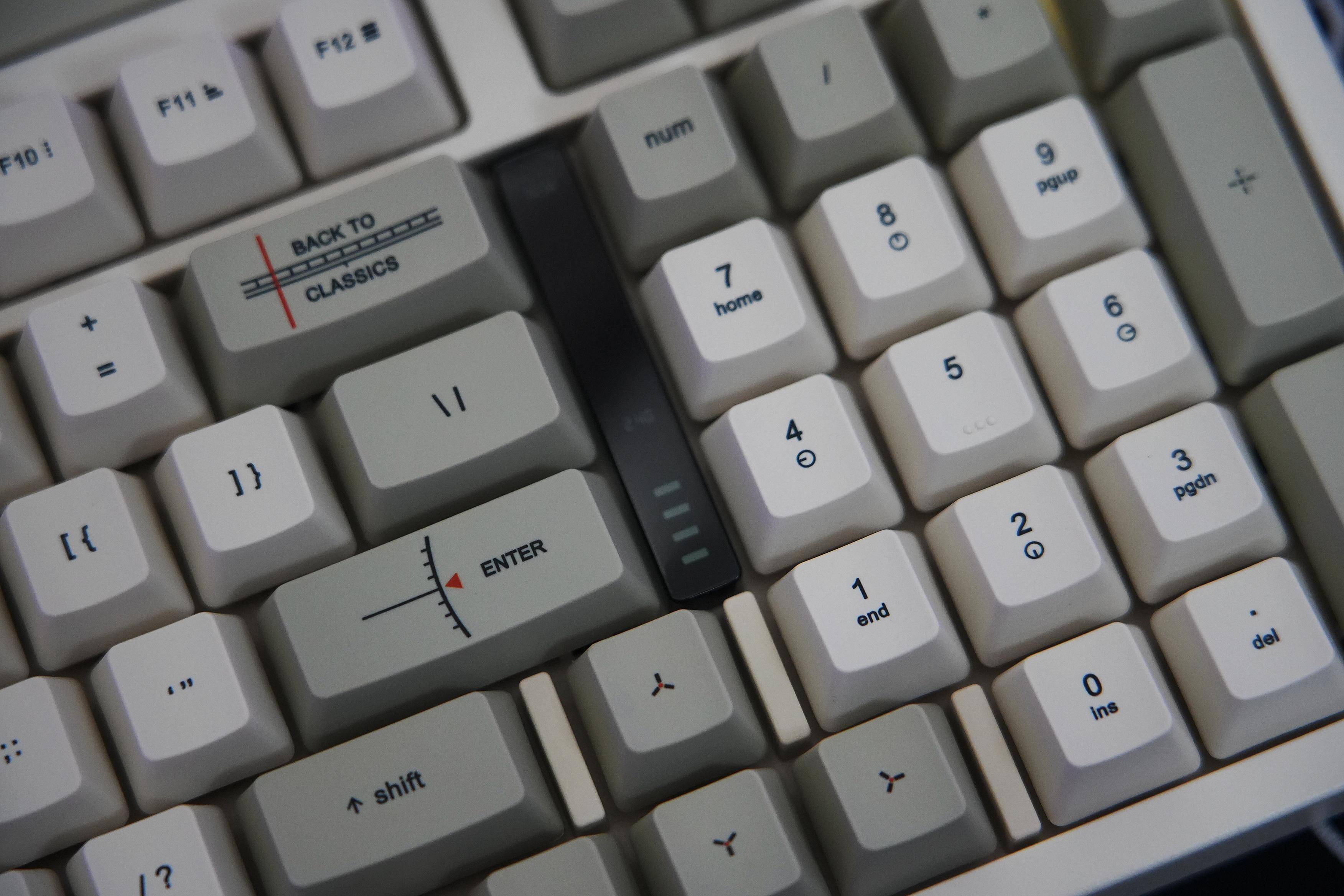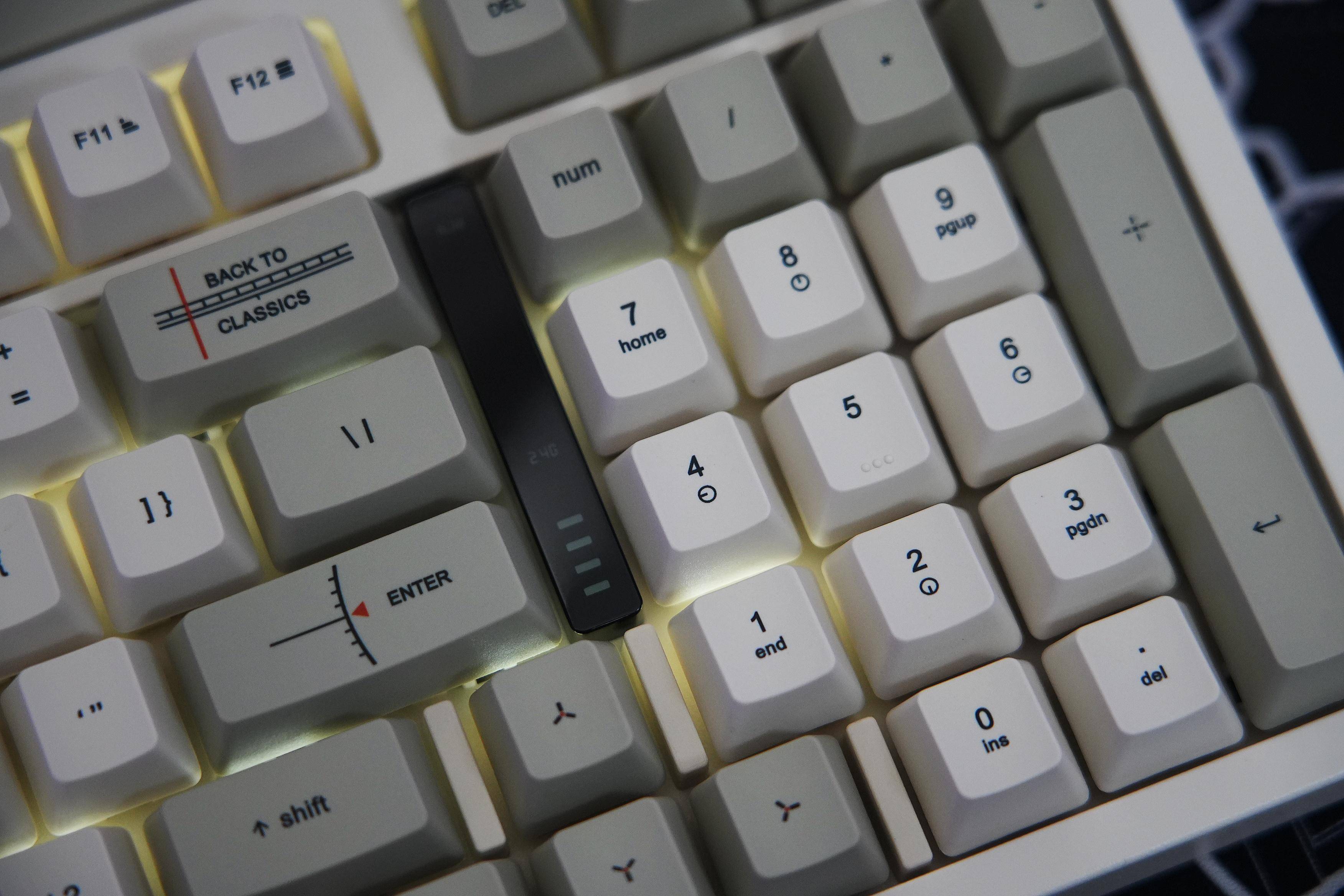 这款键盘搭配了与TTC联名定制的小方轴体,颜色与键盘完美搭配,呈现出复古的灰白配色风格,非常耐看。轴体外壳采用了改良升级的POM材料,提供持久顺滑的手感。触发压力43gf,触发行程1.6mm,总行程3.8mm,使用寿命为8000万次。手感柔顺顺滑,触发响应灵敏迅速,非常适合日常码字和游戏。