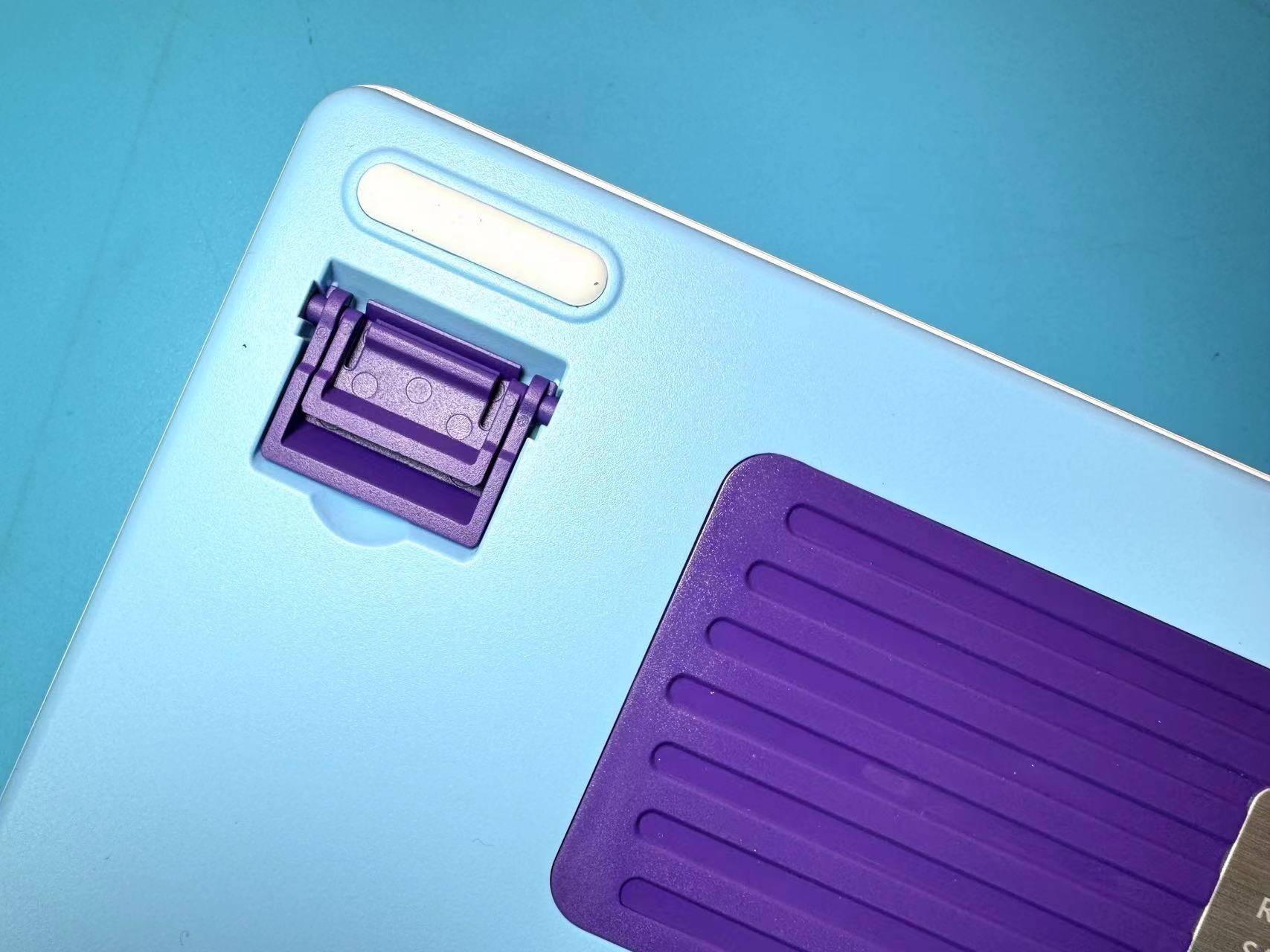 键帽采用的是PBT球帽,圆润的流线摸上去非常舒服,能够很好的贴合你的指尖,打起字来异常的迅捷,使用久了也不必担心打油。配合下灯位的RGB背光设计,夜晚使用效果更佳,让你的夜晚码字生活不再枯燥,闲暇时还能成为桌面上亮丽的风景线呢。键盘的右上角配置的是一个三模链接选择的拨片,操作起来非常简单,看上去也是更增添了键盘的科技感。