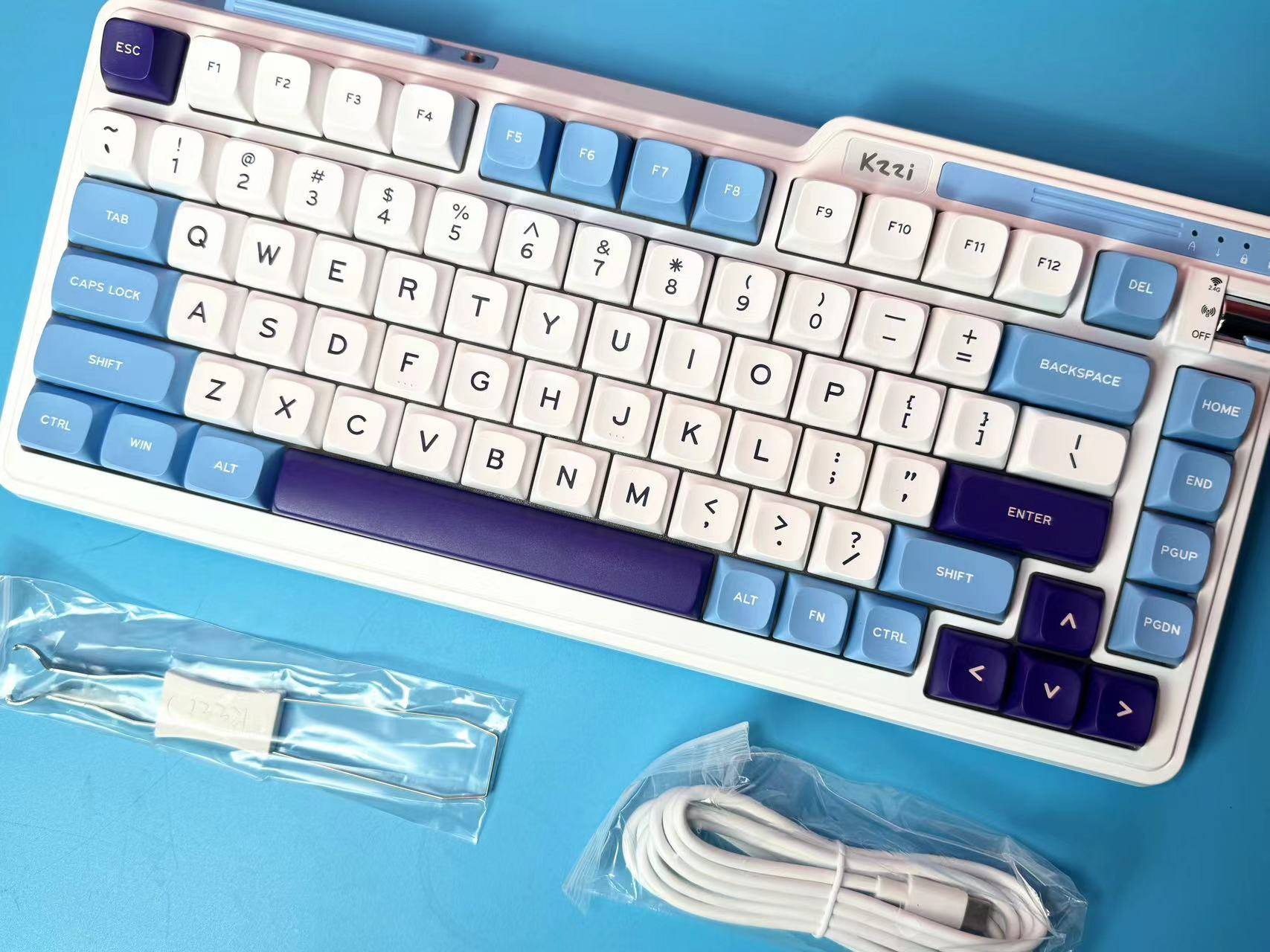 这不,前段时间看到珂芝出了一款青春版的K75 Lite机械键盘,里面有一款配色就是碧海蓝,不但名字让人浮想联翩,就连颜值也是让人过目不忘,于是乎就剁手了。