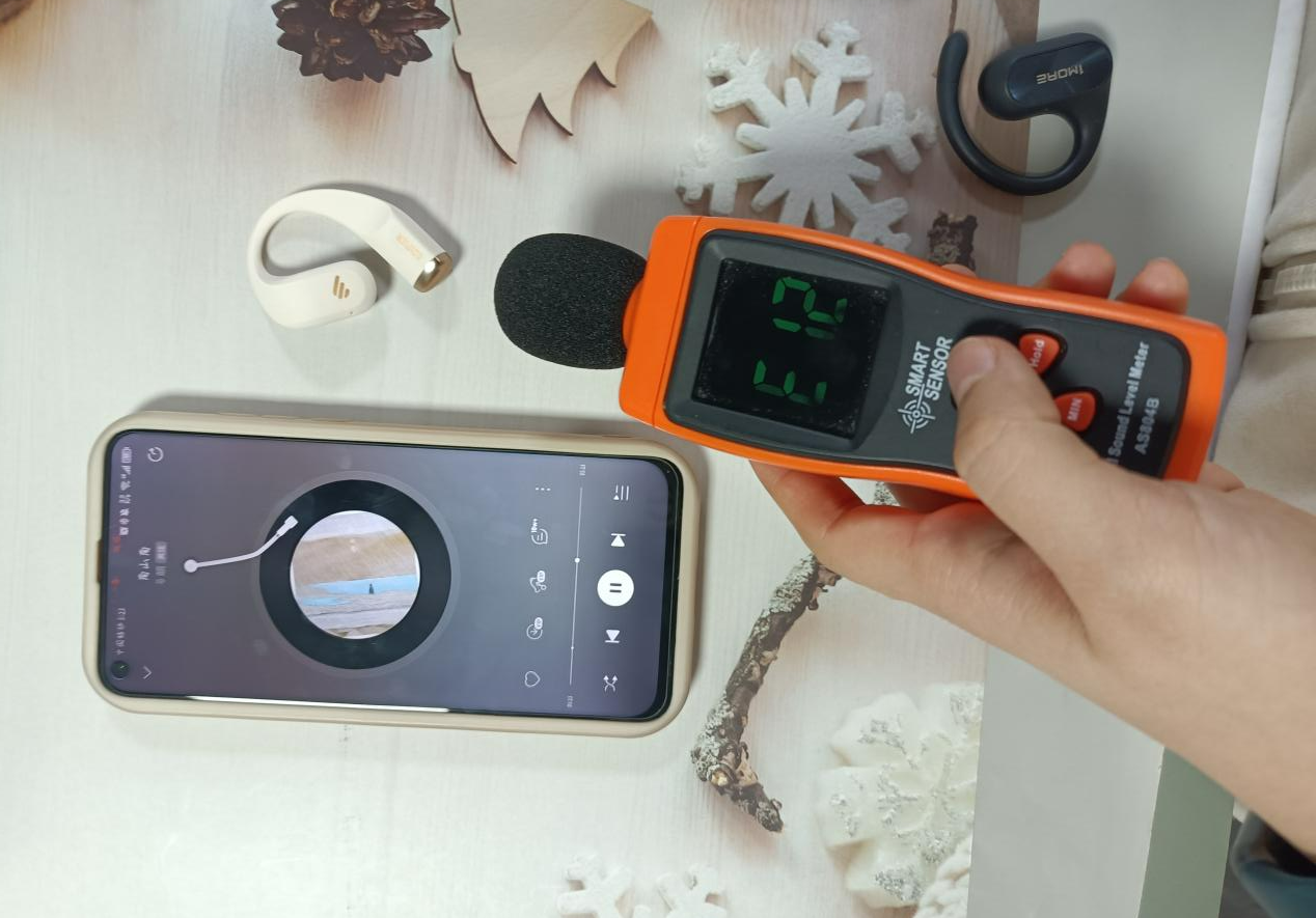 南卡OE MIX:在漏音测试中,南卡OE MIX展现了不错的表现。南卡独家DS指向性传音技术以及多级音腔镂空的精准调校,在中等音量下,该耳机的漏音情况比较小,即使是坐在耳机佩戴者旁边的人,也几乎察觉不到明显的声音外泄。然而,在最大音量下(上图),由于开放式设计的特性,还是能够感受到一定程度的漏音。但总体来说,南卡OE MIX在控制漏音方面做得相对较好,但相较于其他同类型耳机,南卡OE MIX的漏音控制已经比较优秀。