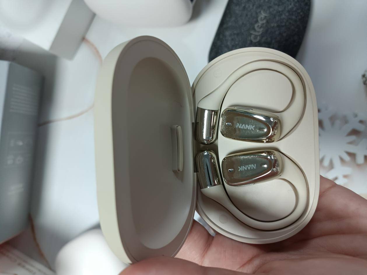 Oladance OWS 2:重量有12.8克,不算太重,采用了挂耳式设计,这种设计不仅保证了佩戴的稳固性,还使得耳机能够紧密贴合耳朵,有效减少漏音问题。此外,耳机外壳采用了高质感的材质,触感舒适且不易滑落。同时,OWS 2还配备了人体工学记忆钛合钢丝支架,这种支架可以根据用户的耳型进行自适应调整,确保佩戴的舒适性和稳定性。