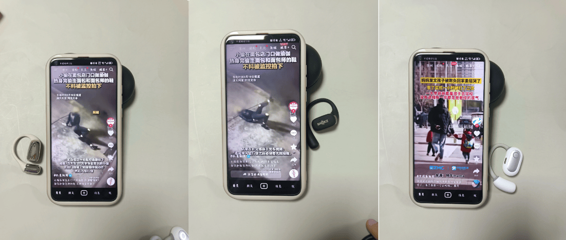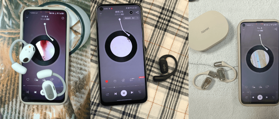①舒适度:我分开三天分别将这三款耳机佩戴体验了两个小时,这期间我每天进行自己的羽毛球运动,其余更多时间都是在刷短视频。对这三款开放式耳机的第一印象是南卡和韶音可以和眼镜兼容,倍思的耳挂恰好可以放比较细的眼镜腿。