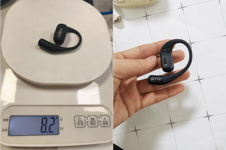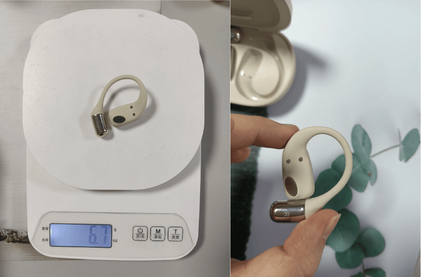 南卡OE MIX:首先对南卡OE MIX的舒适度表示非常的肯定,只有6.7g重,目前挂耳还是很少的,在听力学习几乎是感觉不到耳机的存在感,而且比韶音的重量还要轻很多,我觉得它56:44的前后轻量布局和EAA悬浮设计可以很好的分摊掉这些重量,而且在运动的时候也不会晃动。