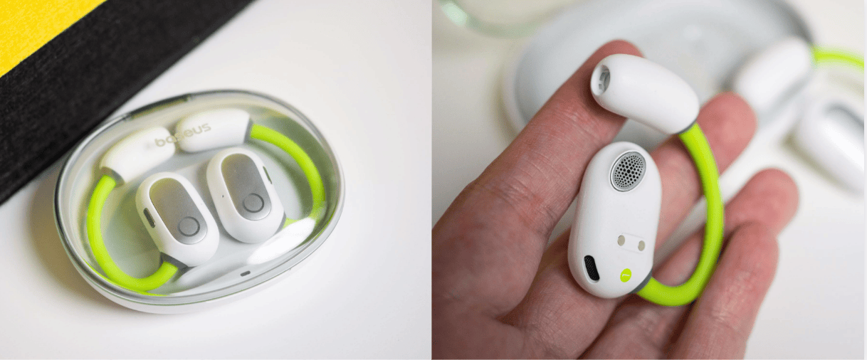 颜色方面倍思的设计比较大胆,作用了白色和荧光绿的撞色设计,夜跑的时候会比较明显, Eli的耳挂设计较为坚固,用手硬掰才会有点弹性表现,这样设计能保证耳机比较耐造,总爱摔耳机的朋友们可以考虑。但这种设计bug也是在的,就是长时间佩戴时不如上一款舒适。倍思Eli在动圈尺寸方面下足了狠功夫,采用的是16.2mm空气定向传导喇叭,可以让声音能量场最大限度地在两耳之间进行环绕交替,营造非常强烈的现场体验感,戴上它之后你才知道那些年充钱听的SQ无损音质都是值得的!倍思Eli选用了更加高端的定向传音技术,能够将声波依照耳廓结构集中定向地传至耳内,就像给声音做了一个专项训练一样,告诉它不该去的地方你别去,漏音频率大幅减少!