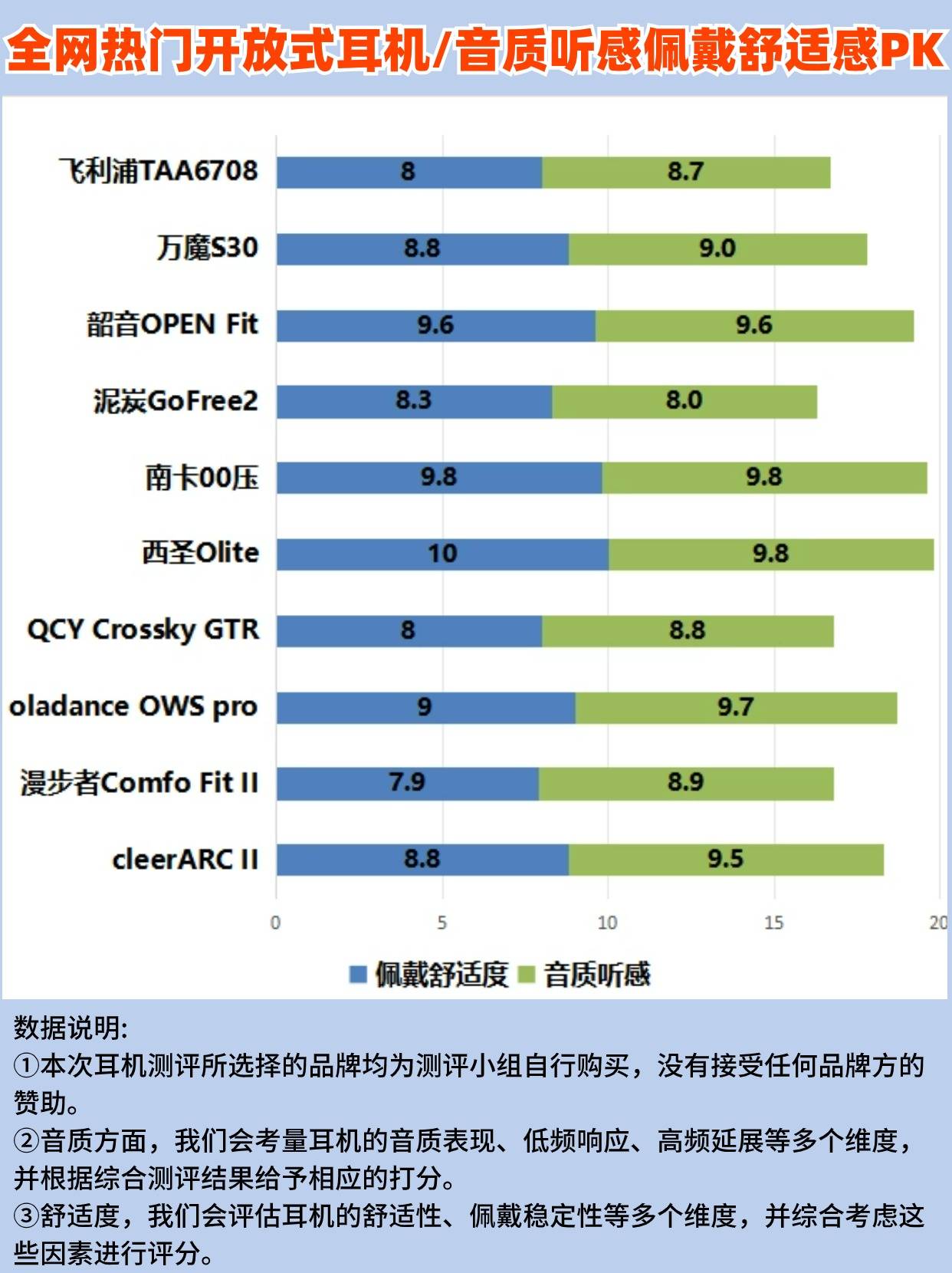 我整理了专业机构对开放式耳机测评的相关数据,通过图表数据能够帮助我们排除一些质量不佳的开放式运动耳机,下面跟随我们的步伐一起看看吧。