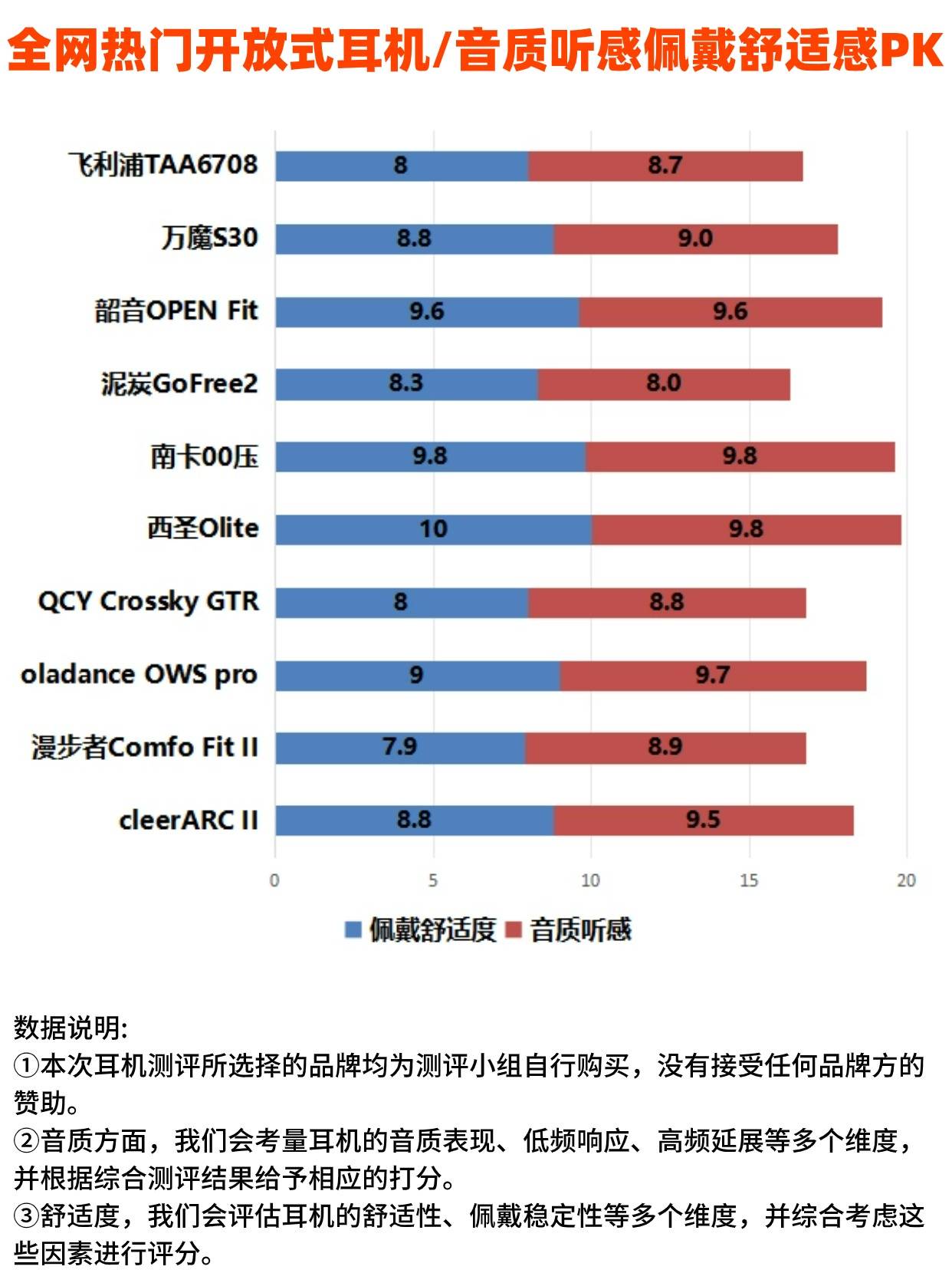 在分享之前,我整理了专业机构对开放式耳机(不入耳耳机)测评的相关数据,通过图表数据能够帮助我们排除一些质量不佳的开放式耳机。