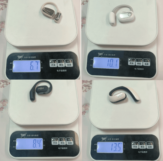 单机重量上,南卡OE MIX只有6.7g,是这四款里面最轻的,韶音OpenFit 有8.7克,倍思是9.9g,而OladanceOWS Pro均达到了13克以上,差值达到了50%以上,对于喜欢运动的人群来说,这点重量影响还是比较大的,特别是户外骑行或者是爬山,都是长时间的运动,会有压耳感,感觉会比较明显。