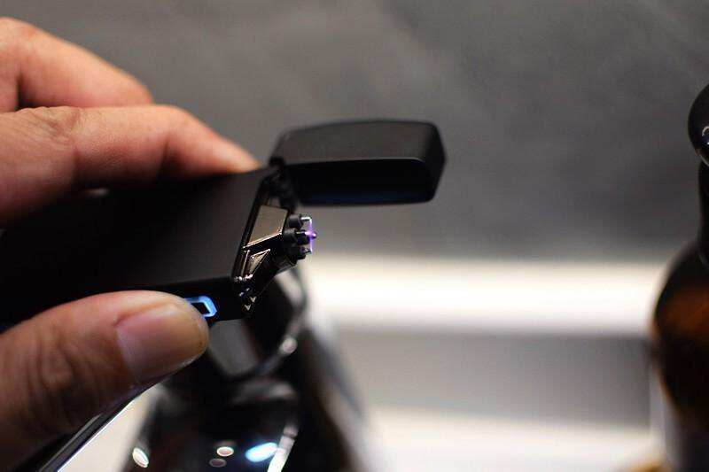 极蜂双电弧充电打火机,整机重量控制在83g克,非常的轻薄,拿在手里也很舒适,外观也很精致,耐磨性也很好。打开机身顶部的盖子,轻按侧面的开关,就可以点火,电弧充电打火机还具有防风的特点。