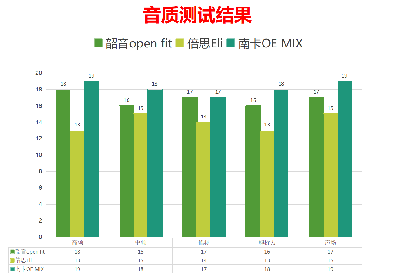 韶音Openfit耳机在低频表现上确实令人印象深刻,这得益于其采用的全新OpenBass™低频增强技术以及18mm*11mm的超大高振幅高灵敏度驱动单元,这些配置共同营造出了深沉且充满力量的低频体验。然而,在中高频的表现上,韶音Openfit耳机可能会显得有些刺耳,音质和音量的表现可能未能完全满足所有用户的期望。这可能是由于调音风格的差异,或者是个人听音偏好的不同所导致的。对于追求均衡音质的用户来说,可能需要在购买前进行试听,以确保耳机的音质符合个人的喜好。其次,在人声表现方面,南卡OE MIX同样展现出了优势。它的人声还原度高,音色自然且富有层次感,无论是男声还是女声,都能得到很好的展现。而韶音Openfit和倍思Eli在人声表现上则略显平淡,虽然能够清晰地传达人声,但在音色还原和层次感上稍显不足。