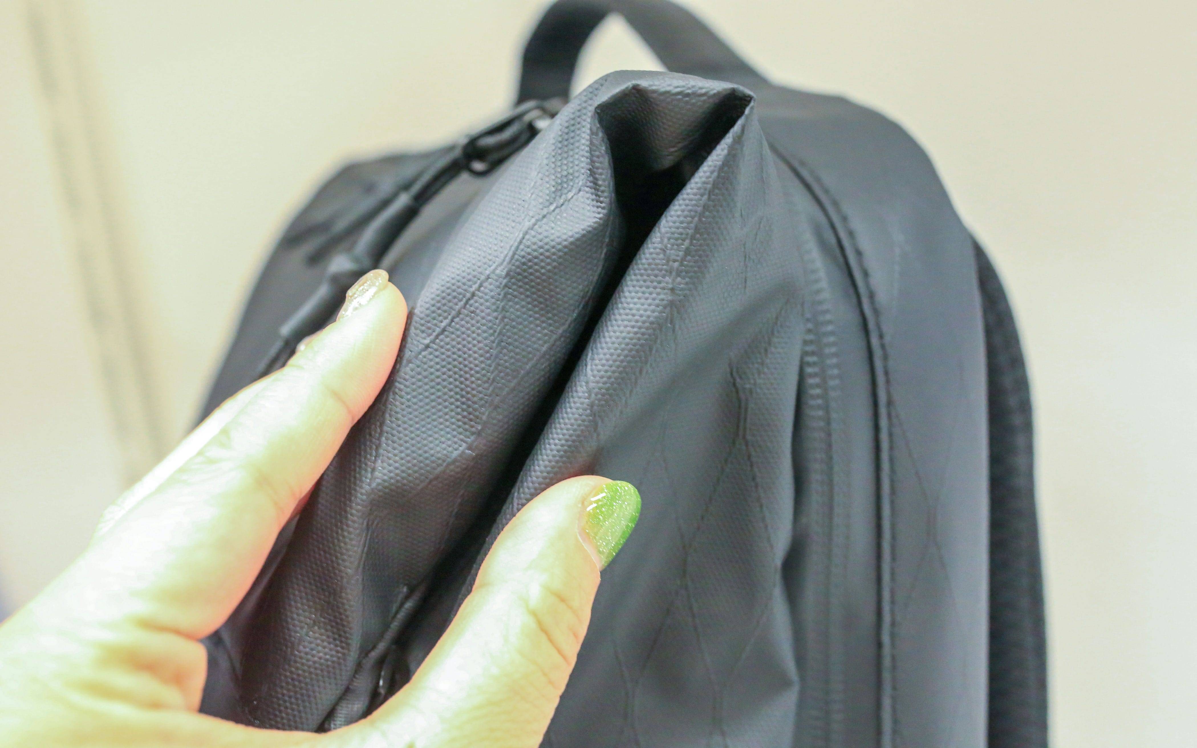 地平线8号轻旅行双肩包的拉链也是采用的金属拉链,细节做的很好,使用时顺滑且咬合紧密。为了避免雨水渗透,拉链也配置了防水密封条,这样一来,在雨天或者户外活动中也能有效保护包内物品不受潮。