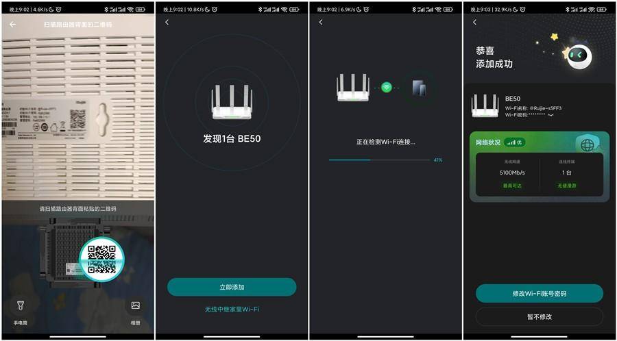 通过手机应用商店或者通过包装说明上面的二维码下载锐捷星耀家APP对路由器进行设置。通过扫描路由器底座下面的二维码就可以添加路由器,因为我的网络是在光猫已经设置桥接了所以能够直接上网,通过后就能添加成功。