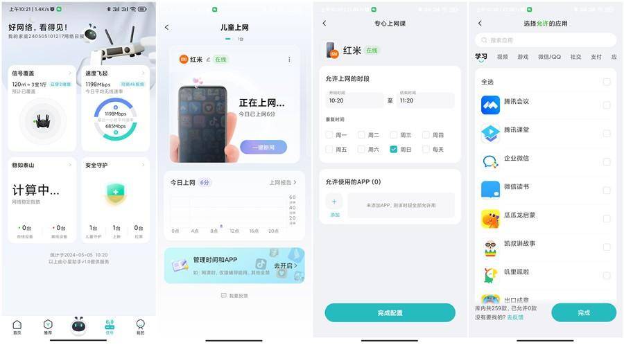 除了游戏加速功能外我最喜欢的还是这款路由器内置儿童上网控制功能,这里能够自由的设置儿童上网时间段以及控制可以使用APP,再也不担心孩子偷偷上网以及浏览其他内容了。