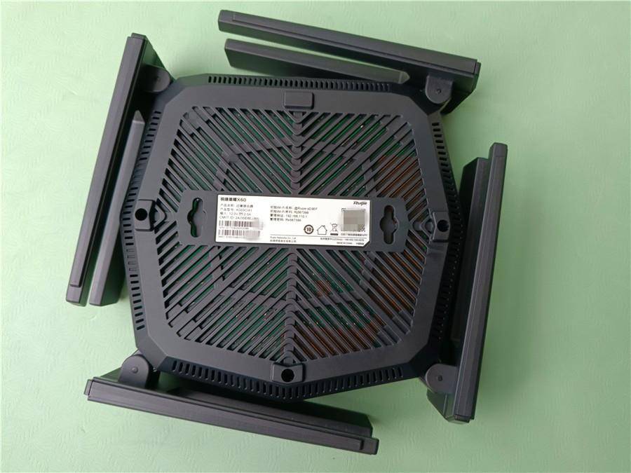 能够看到路由器设计颜值还是非常不错的,这款路由器的天线使用了天蝎系列的同款天线,感觉这样的天线配置非常合理。锐捷天蝎X60在信号覆盖能力上也表现出色。搭载了8颗高性能放大功率芯片和8根高增益天线,这是这款路由器信号强劲的展现。