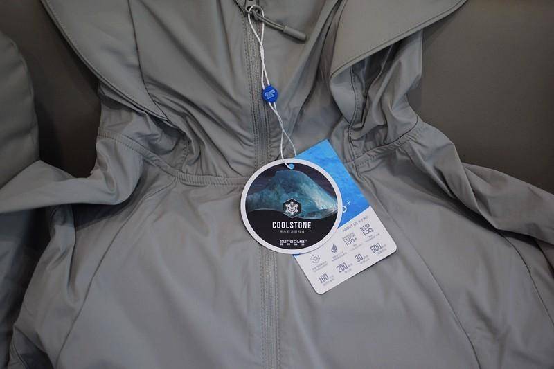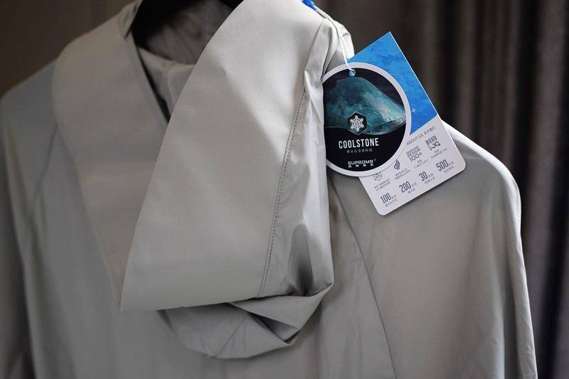 其双专利寒水石凉感科技 - 寒水石纤维凉感面料,它的寒水石纤维凉感,能给皮肤迅速降温,穿着更冰冷。它还具有UPF100+高倍防嗮,相比于遮阳伞,更便捷,防嗮效果优于国标2倍,可有效阻挡阳光中97%的紫外线,和防晒霜相比,也不会给肌肤造成负担。