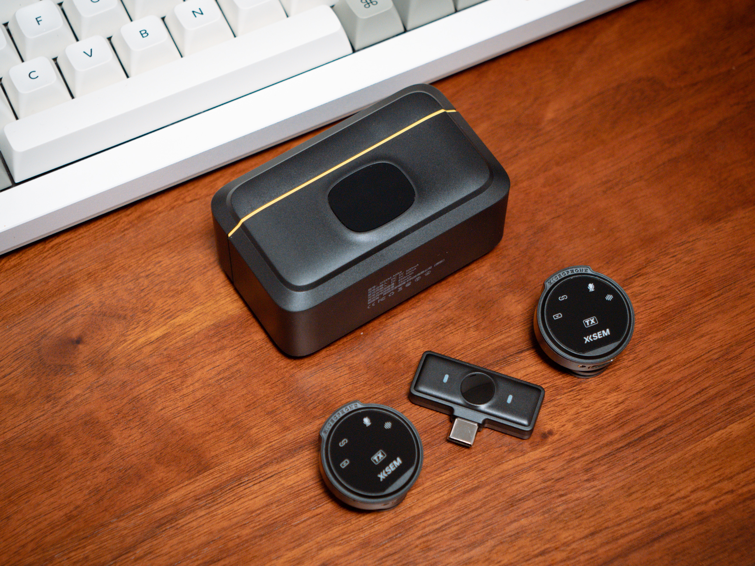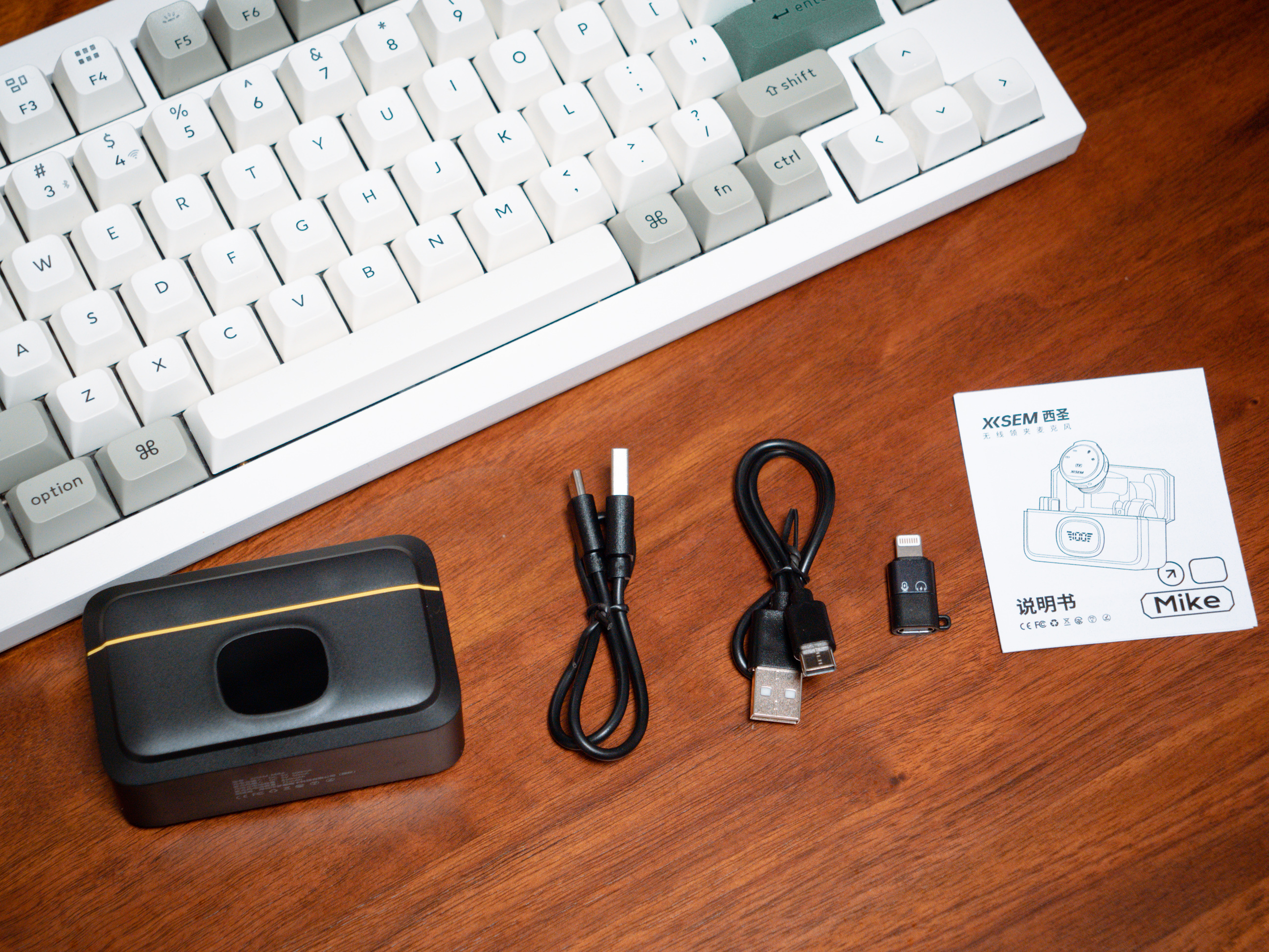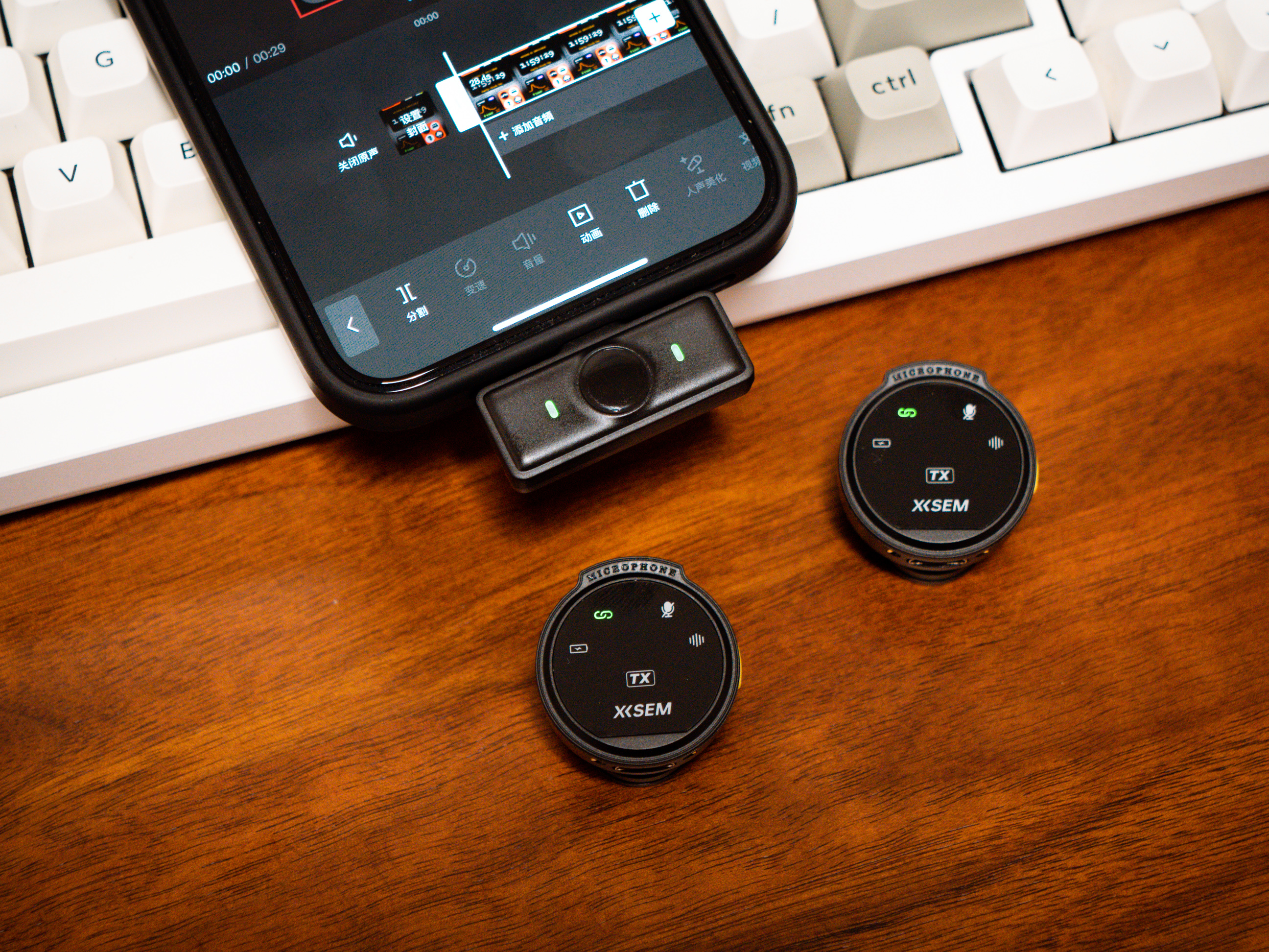 像我平时也会有一些录制沉浸式开箱、打字等视频的需求,可以将一个收声麦放在离产品更近的位置,小巧的身形也不会很突兀。
