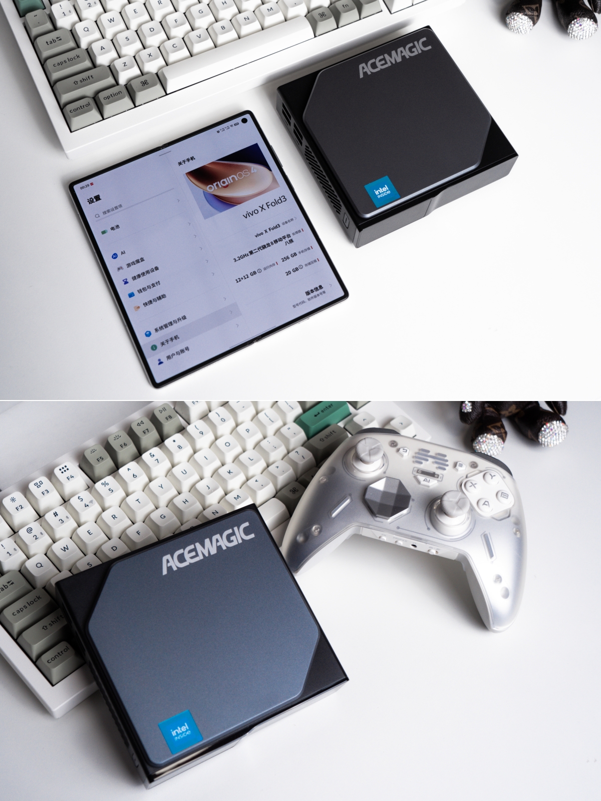从官方数据来看,近似120mm见方的长宽尺寸比展开后的折叠屏手机还小巧一些,380g左右的重量和一支游戏手柄差不多,整体算得上是轻盈小巧。