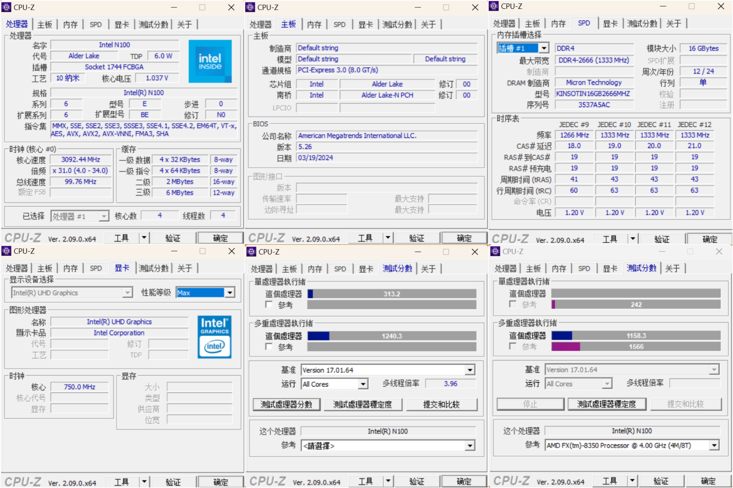 CPU-Z的检测和测试结果也没有虚标,对于N100而言也不用过分纠结于性能测试,毕竟价格在那里摆着。