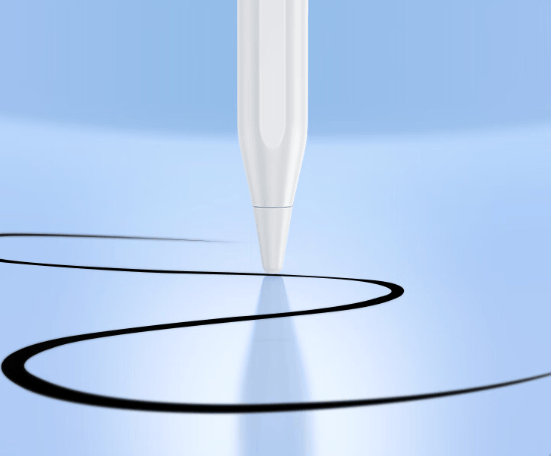 现在市面上比较常见的笔尖材质就是与Apple pencil同款的pom,pom材质的笔尖耐磨性好,导电性强,能持续长时间的书写,并且硬度适中,不会划伤屏幕。