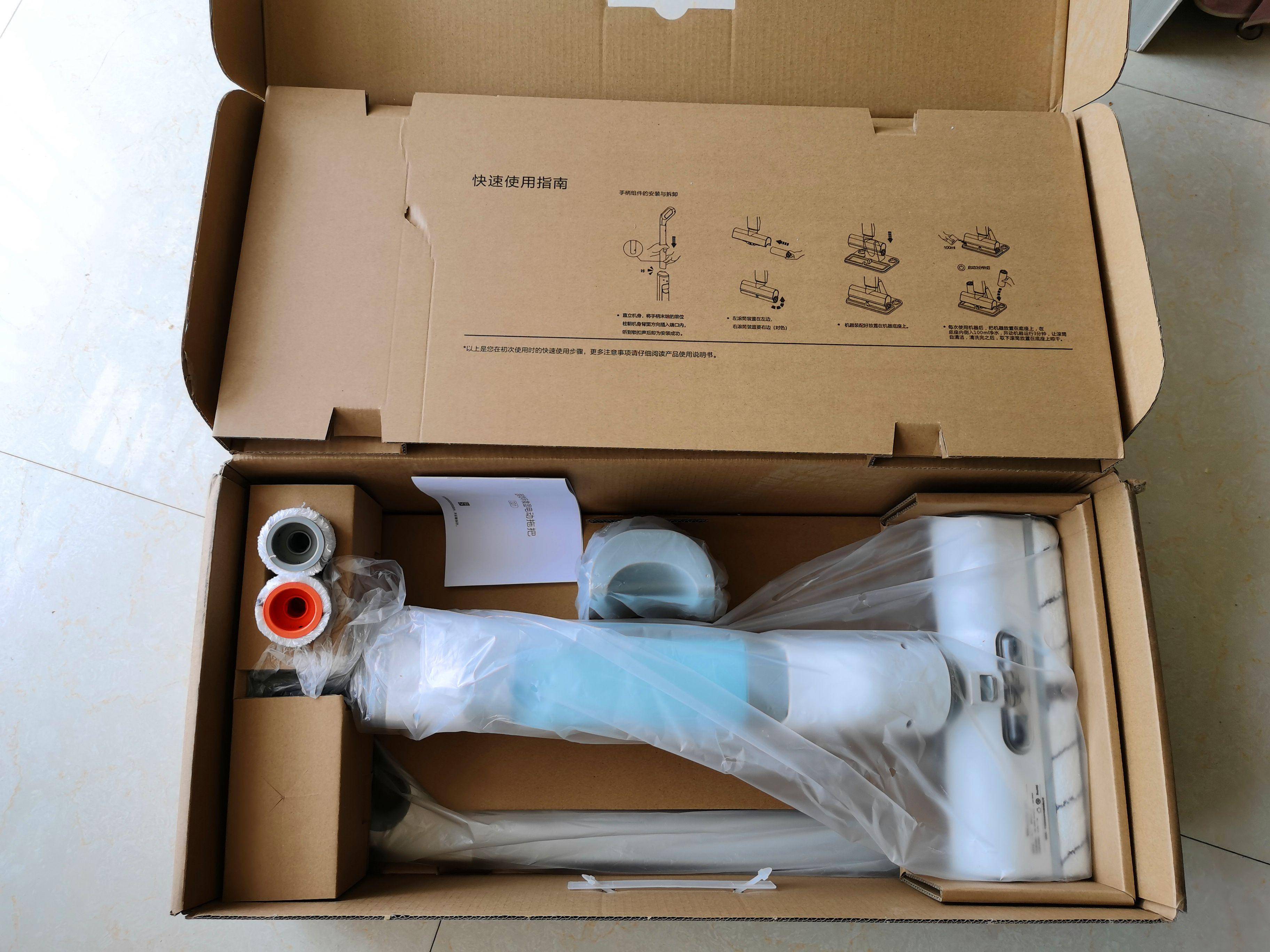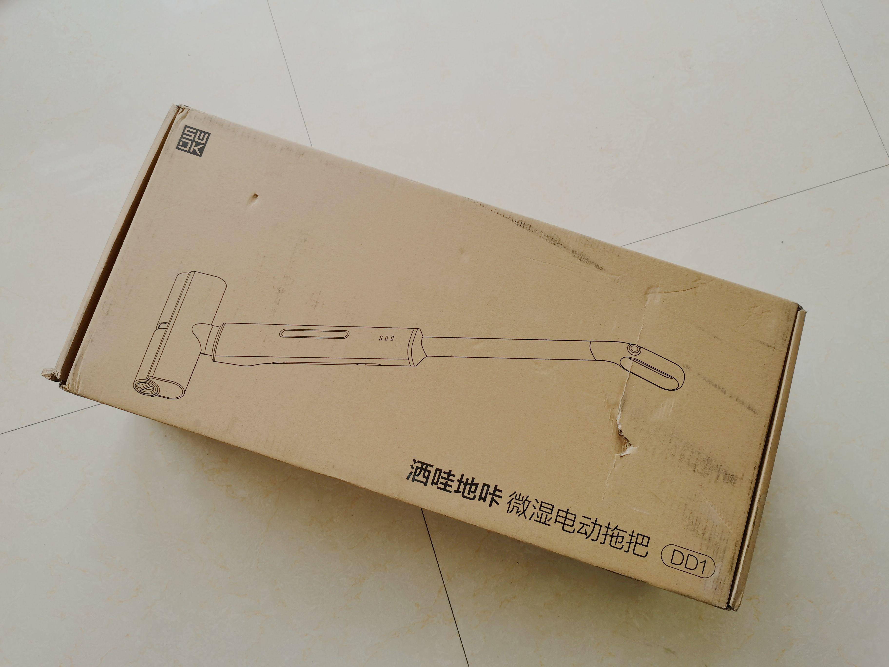 首先给开箱吧,一格大大的硬质包装,表面描绘了这款洒哇地咔微湿电动拖把的具体形状,其他特色都在内部,简单神秘的包装。