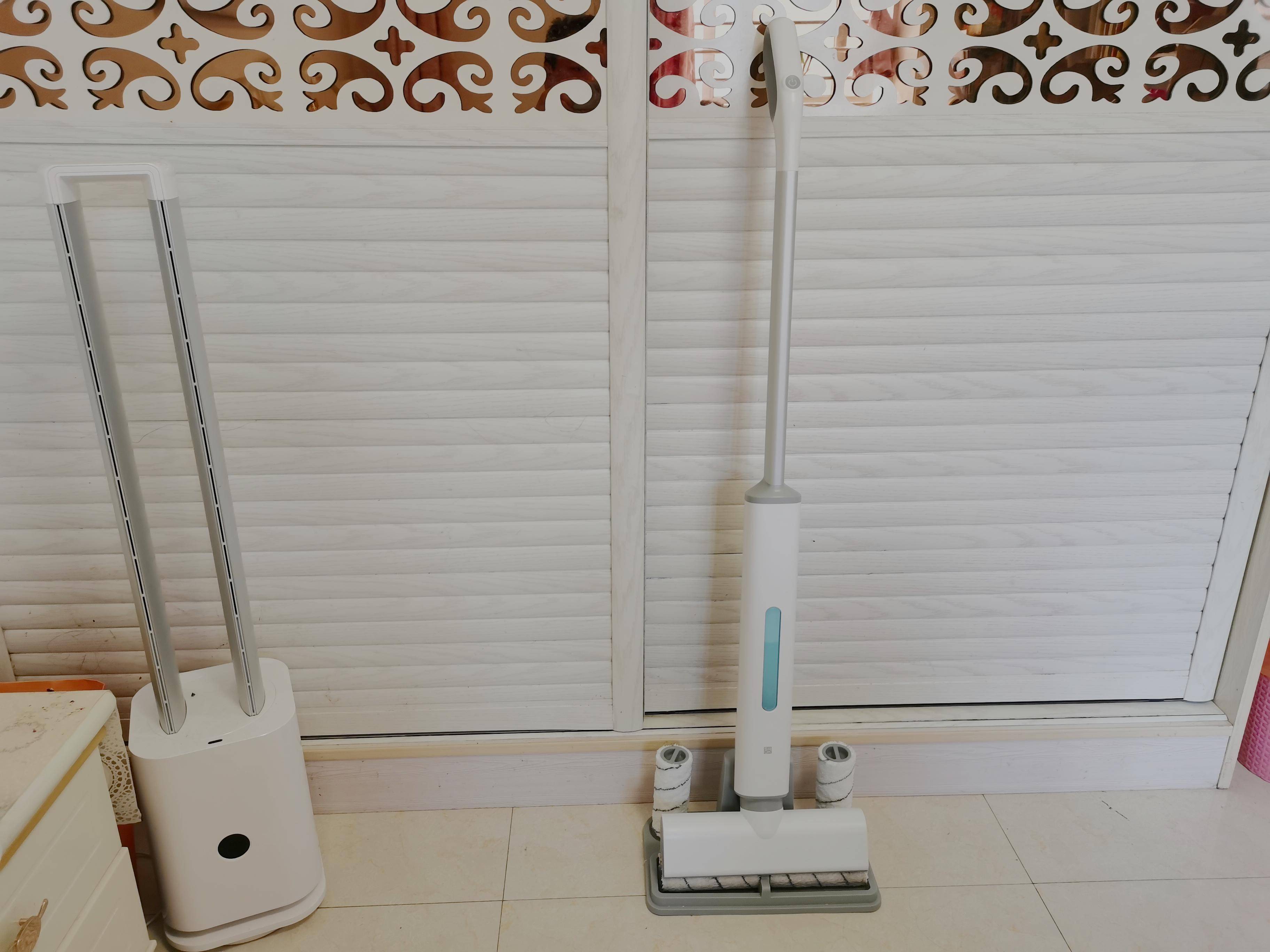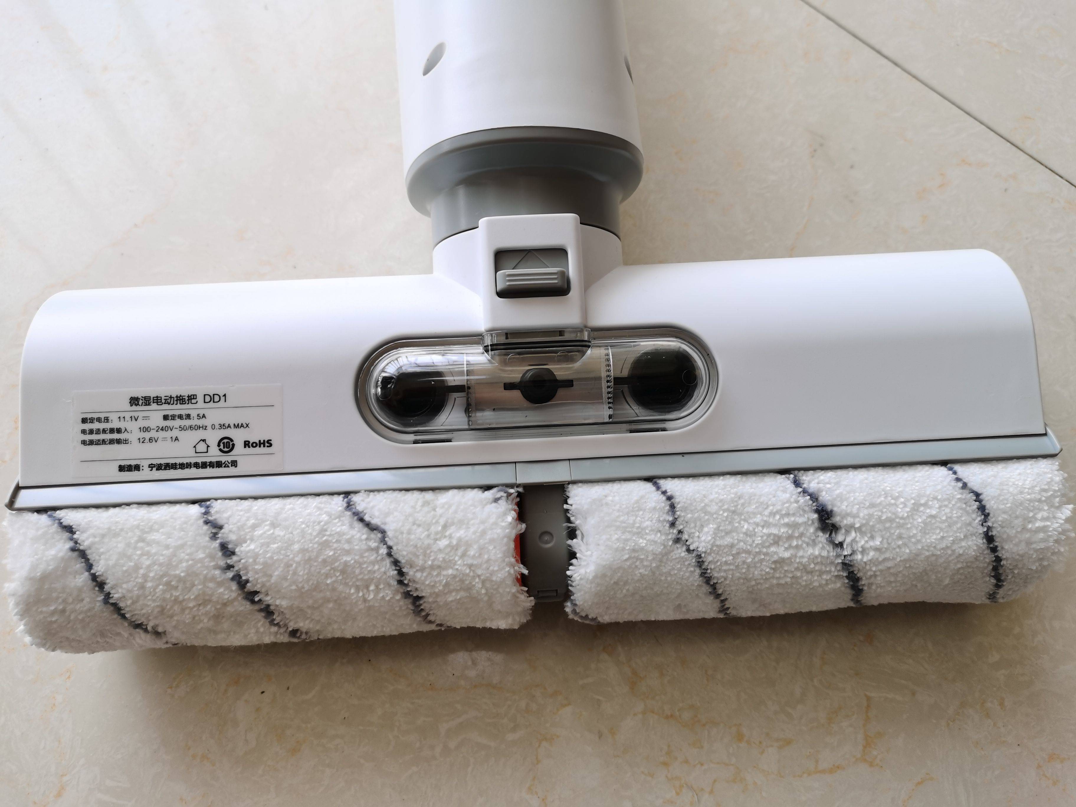 看一款拖把的好坏,我们往往会先看拖布,洒哇地咔微湿电动拖把未采用拖布的方式使用了双滚筒刷头设计,小巧而显得别致。