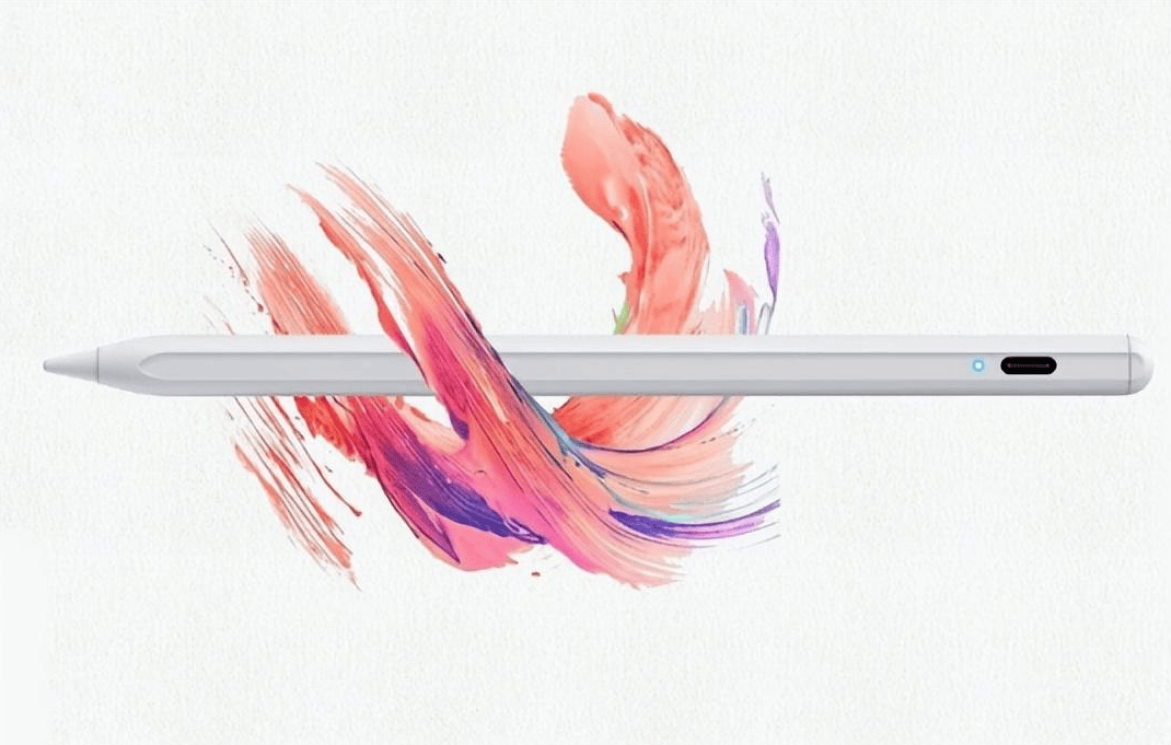 吉玛仕这款电容笔外观简洁大方,笔身带有电量显示灯,可以实时查看电量,非常方便,笔尖采用了pom材质,不仅耐磨防滑,降噪效果也很不错,只是偶尔会出现断触的情况。采用常见的type-C口充电方式,续航不错,充一次电能连续使用10和小时左右,还具有倾斜压感设计,通过调整笔尖倾斜角度,把控线条的粗细,对有绘画需求的用户很友好。