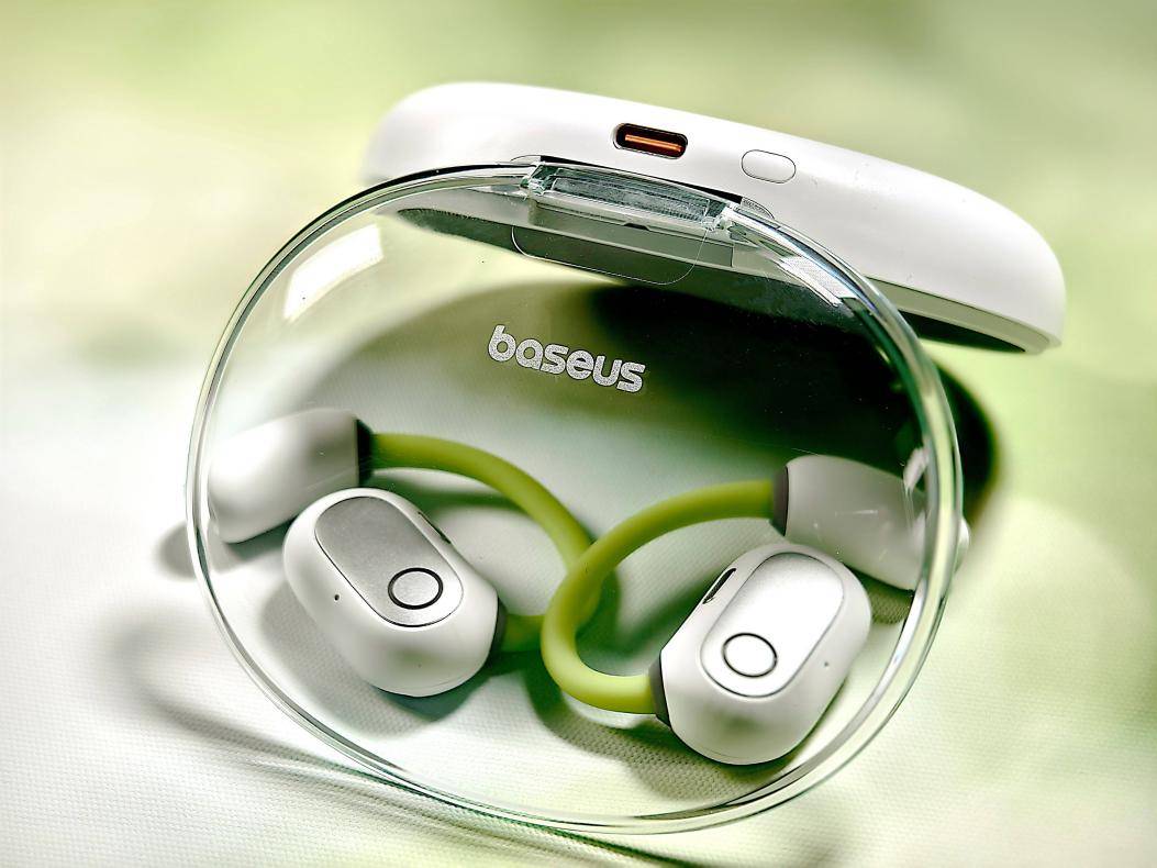 这款耳机单边重量仅9.9g,堪称开放式真无线耳机中的轻量级选手。其耳挂部分巧妙地内嵌了钛合金框架,既保证了轻量化,又有效降低了与眼镜的干扰。表面覆盖了一层被倍思叫做的“Babyskin”硅胶层,触感柔软亲肤,令人倍感舒适。耳机搭载了16.2mm动圈单元,这是开放式无线耳机中常见的大尺寸设计,确保户外聆听时声压充足。值得一提的是,Eli Sport 1的扬声器出音口出音口设计了一个偏置角度,出音口倾斜了20度,更加贴合耳道口,实现定向传声。这种设计让声音更直接地进入耳道,有效降低了声音泄露比例,带来更加沉浸的聆听体验。