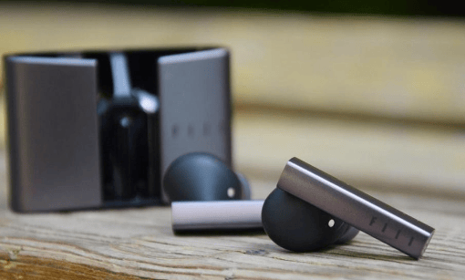 佩戴:FIIL CC Pro2蓝牙耳机的外包装的主色为灰金色的包装盒,右上角标识着“FIIL”品牌Logo,耳机吸力还是比较大的,一般使用或者放在包里,不用担心耳机会掉出丢失。但是单个耳机的重量为5.4克,长时间佩戴对耳朵有明显负担感,影响长时间佩戴的舒适度,整个耳机没有任何的按键,通过触摸耳机可以进行多功能操作,会容易误触。