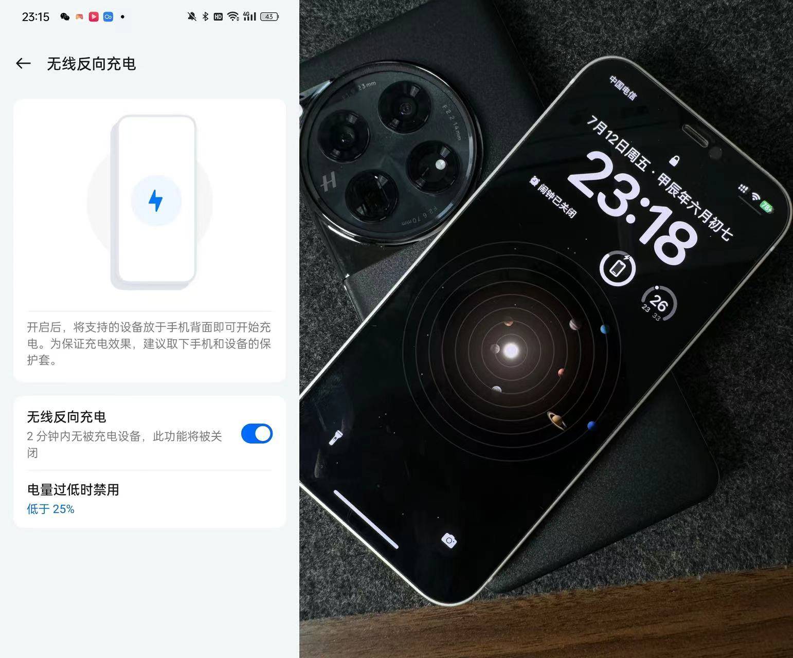 而且,一加12还非常超前的配置了无线反向充电功能,对于不论是可以无线充电的手机、还是无线充电的蓝牙耳机,都可以通过反向充电功能给你的这些移动设备充电,这个功能不管是对于像我这样的数码爱好者,还是日常多设备出行的小伙伴来说,都非常实用,再也无需随身携带充电宝,因为它本身就是充电宝!