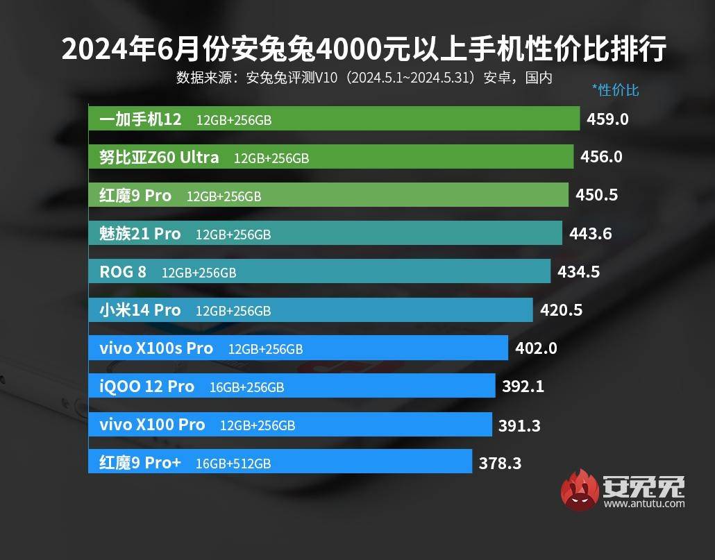 选来选去,我盯准了一加12,毕竟从硬件的角度来说,一加12搭载第三代的高通骁龙8处理器,高素质2K京东方护眼屏,5000万像素索尼LYT-808影像传感器、120倍潜望式长焦、还有5400mAh大电池、仿生震动马达,无线快充和红外遥控、ip65防尘防水都有,还有旗舰级硬件配置拉满;能够连续4个月霸榜安兔兔4000元以上旗舰手机性价比排名第一,可见其实力确实不一般。