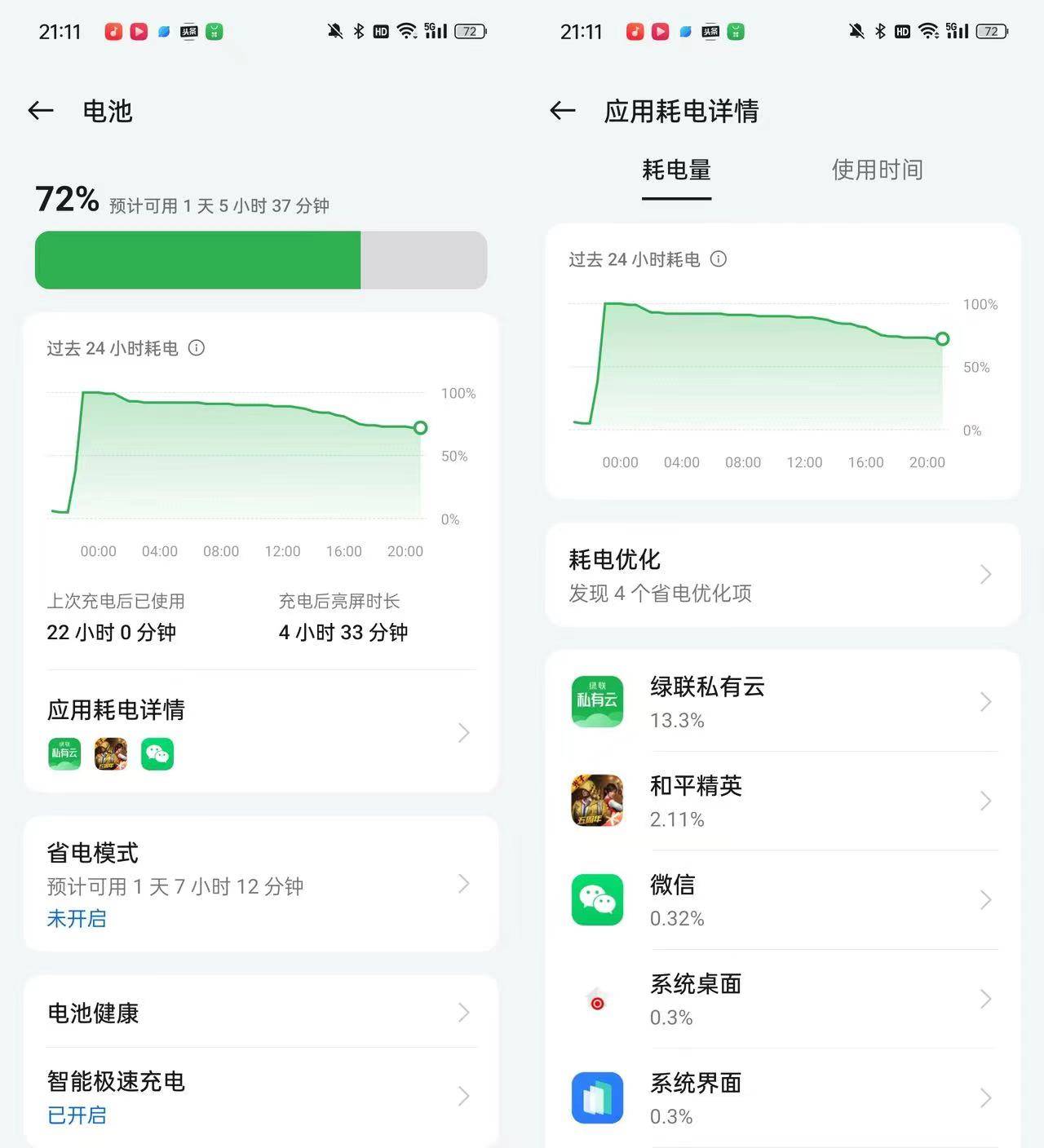 从使用的角度来说,头一天晚上把手机充满电,第二天正常使用微信、电话联系工作,下班拍照、刷剧一多小时,使用了24小时之后,到第二天晚上23点仍然有45%的电量,其续航能力真的完胜我之前买过的全部手机!