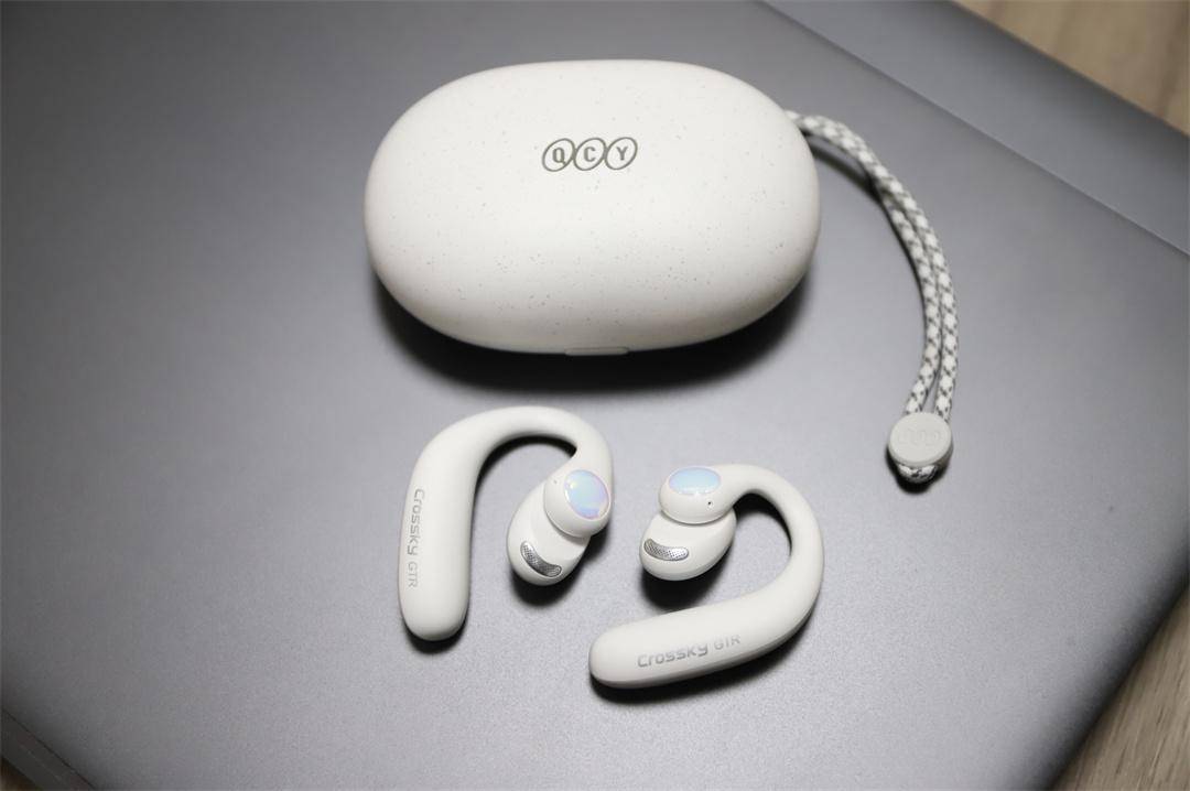 耳机主体方面,QCY Crossky GTR采用了开放式悬挂式设计,前端集成了听筒、耳麦和触控面板,触控面板的炫彩亮面在不同光线下熠熠生辉。中部挂耳部分则运用了人机工程学设计,完美贴合耳廓,为用户带来舒适无感的佩戴体验。其自研的无人机旋翼形态转轴设计更是别出心裁,前腔可自由旋转90°,轻松应对各种运动场景。