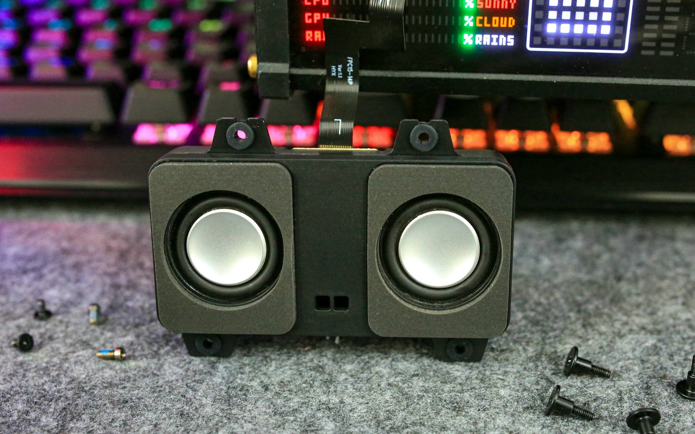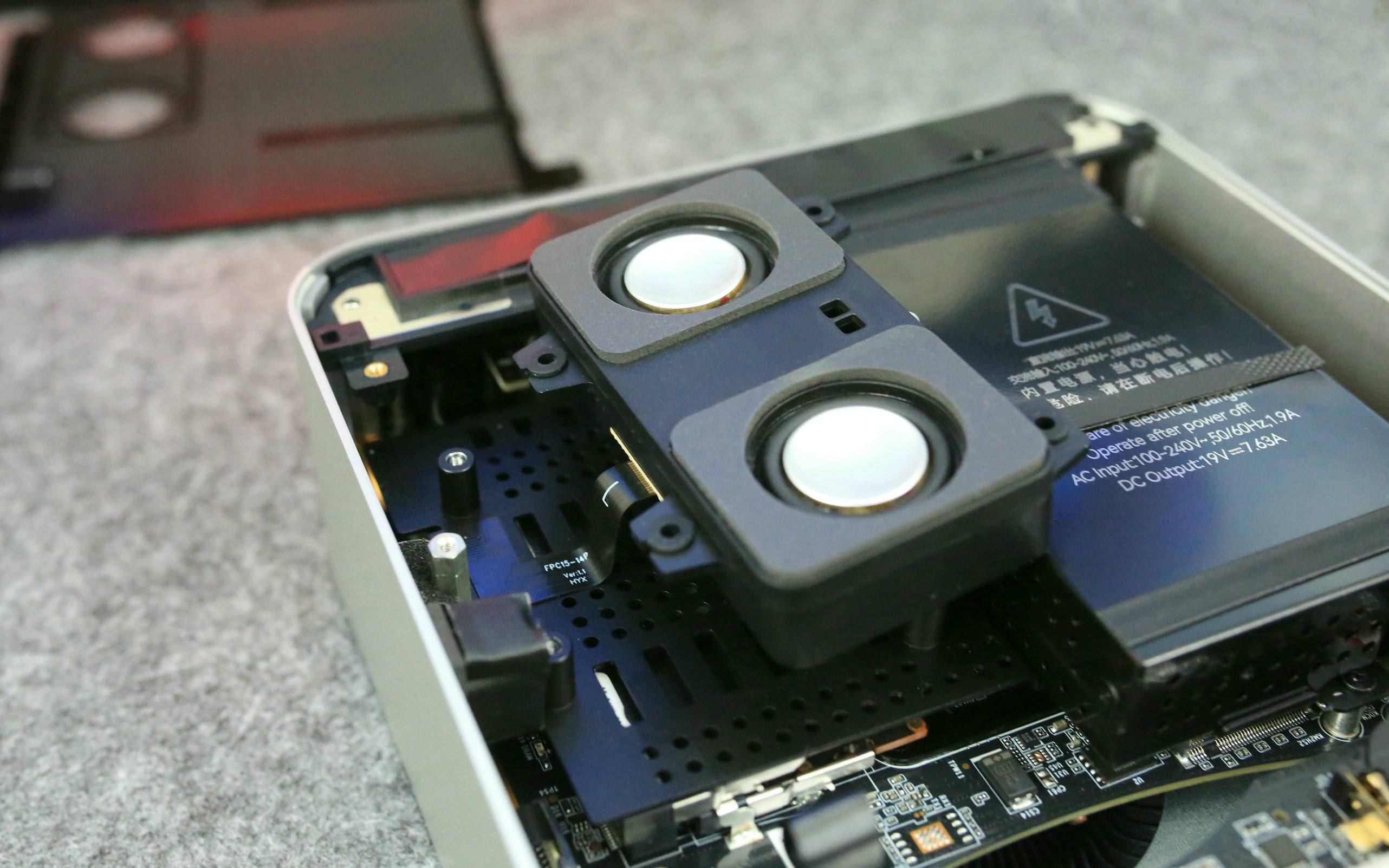 零刻这次设计依旧非常用心,双扬声器设计,与金属防尘网、铝合金外壳、以及扬声器金属支架的连接处都采用了防震脚垫,有效避免共振。