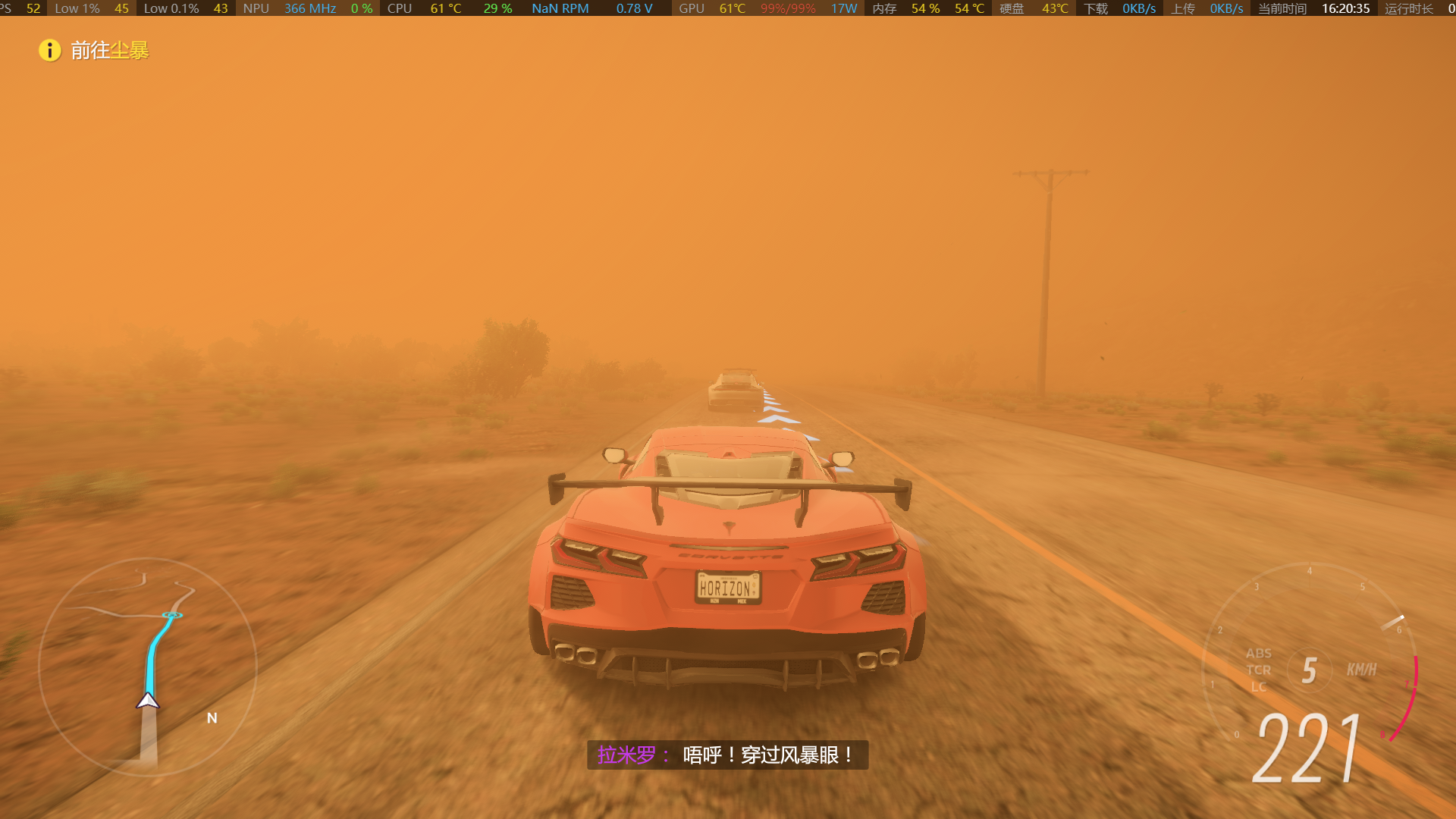 《极限竞速:地平线 5》作为一款对显卡要求较高的 3A 游戏,在1080分辨率下,零刻 GTi14 依然能够提供平均41FPS 的流畅游戏体验,确保了玩家能够在高画质设置下享受流畅的游戏体验。