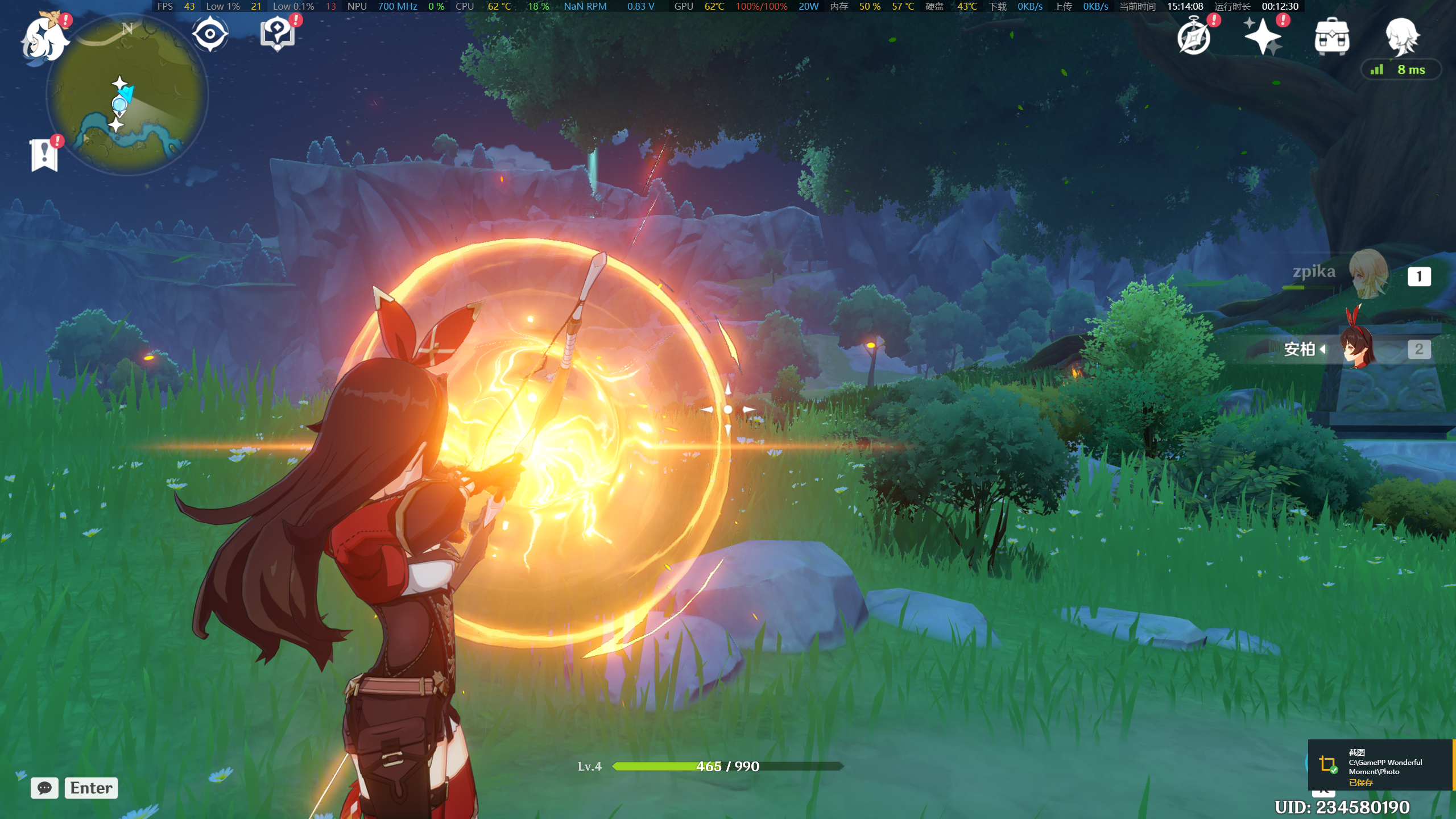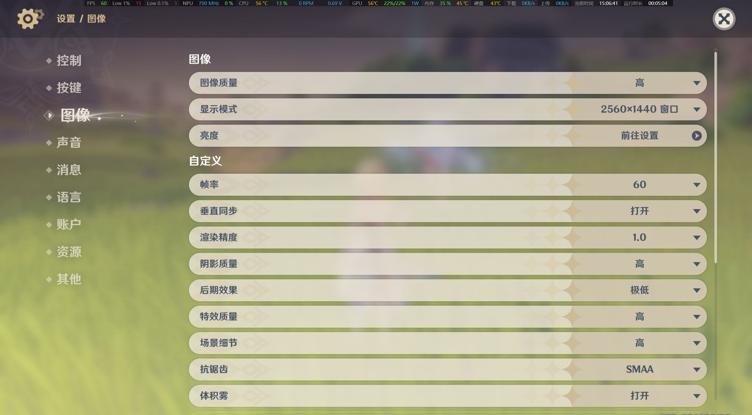 首先开启原神,开启2K高画质,来看看实际的运行情况: