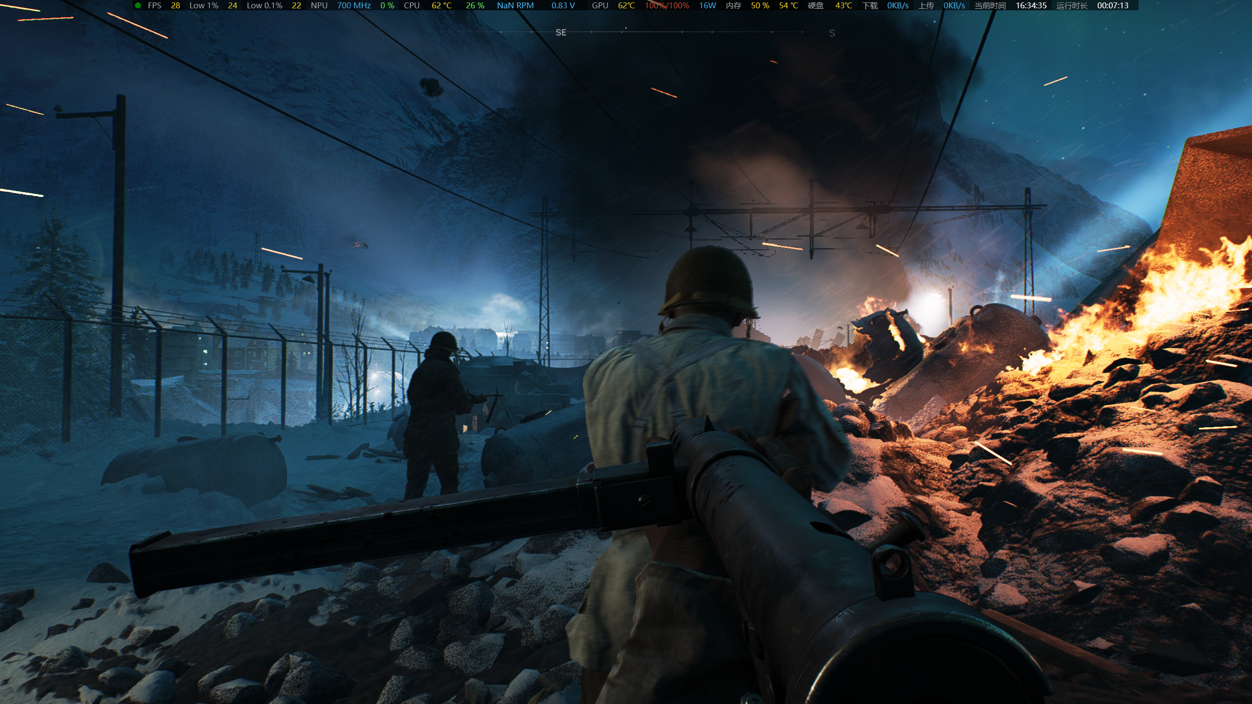 战地5在2K画质下压力比较大,基本在30上下,玩起来也是没啥问题的,操作没有明显的延迟拖拽感及断帧的感觉。