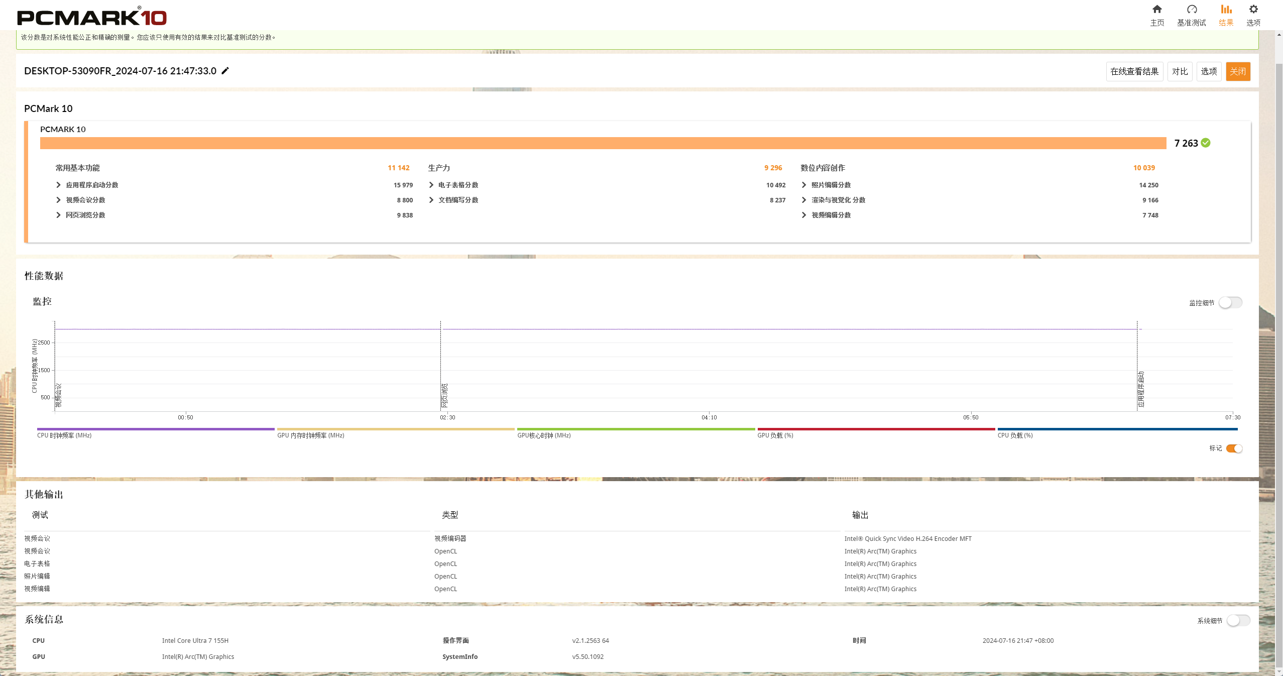 在生产力方面,零刻 GTi14 通过 PCMARK10 测试办公生产力,表现也非常不错。应用程序启动速度、视频会议效率和网页浏览速度等方面的综合得分达到 7263 分。其中常用基本功能得分为 11142,生产力得分为 9296,数位内容创作得分为 10039,PCMARK10 综合得分为 6473。凭借 NPU 的加持,无论是照片处理、网页浏览、视频压缩,还是智能处理和生产力软件的打开与运行,均能迅速完成。