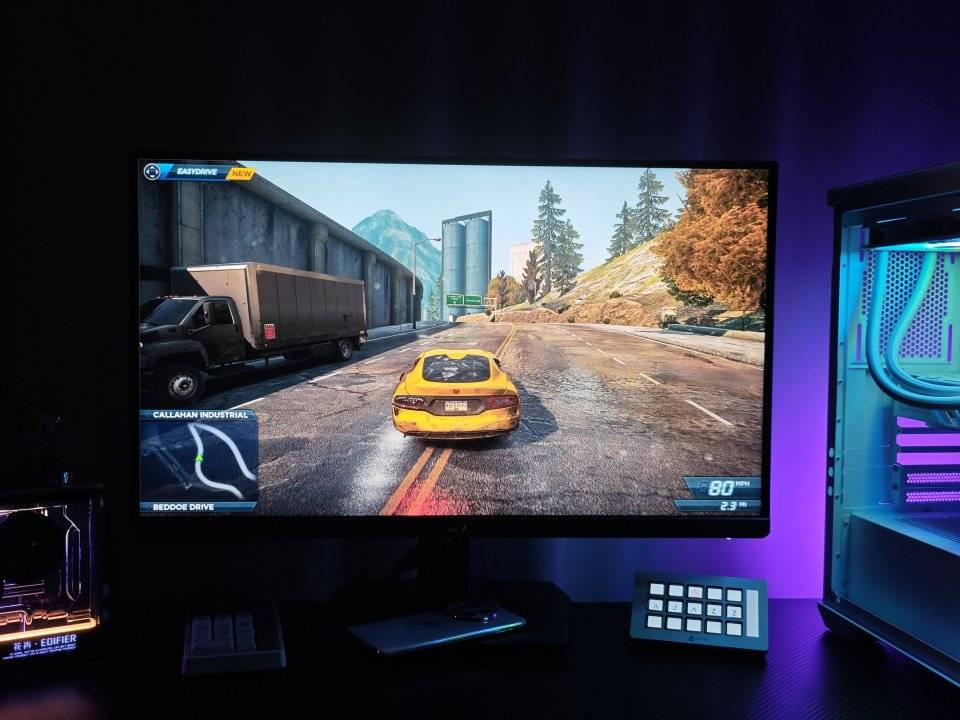 玩赛车类游戏,由于赛车速度非常快,普通的显示器很容易出现画面撕裂、延迟、卡顿、重影现象,大大影响了游戏玩家的体验。ROG绝神27Pro不但拥有4K 160Hz超清高刷而且还兼容AMD的FreeSync和NVIDIA G-SYNC技术,默认情况下直接启用可变刷新率,无论你是A卡还是N卡都可以畅享丝滑流畅的游戏画面,驾驶着豪华跑车飞驰在城市的马路上,旁边的美景飞快的朝后退去,清晰、逼真、流畅丝滑的画面让人产生身临其境的感觉,仿佛自己正坐在跑车里面,享受一脚油门到底的速度快感!