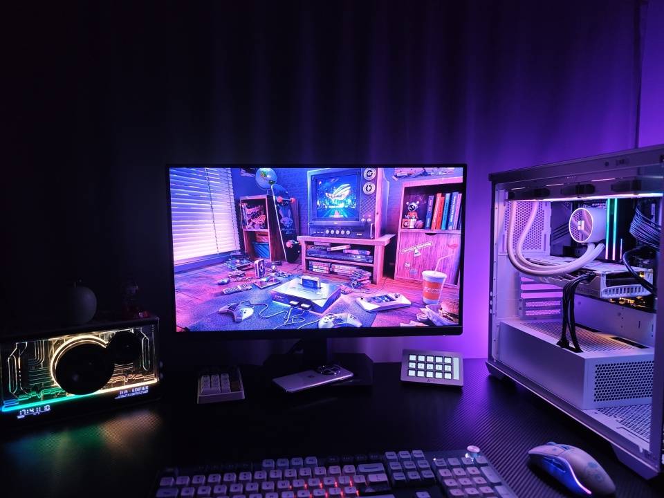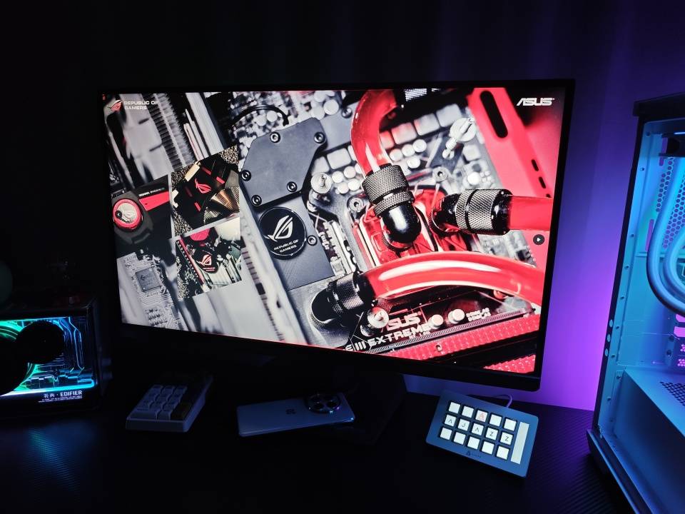 色彩方面显示器支持95%的DCI-P3、130%的sRGB色域覆盖,10bit色深显示画面色彩十分丰富而且自然细腻,除了超高的色域覆盖外,显示器还搭载了华硕的灰阶追踪技术,画面色彩过渡自然而且均匀,观感非常舒适,用ROG绝神27Pro玩游戏、看电影、图片设计、视频剪辑都可以获得生动而且准确的色彩表现。