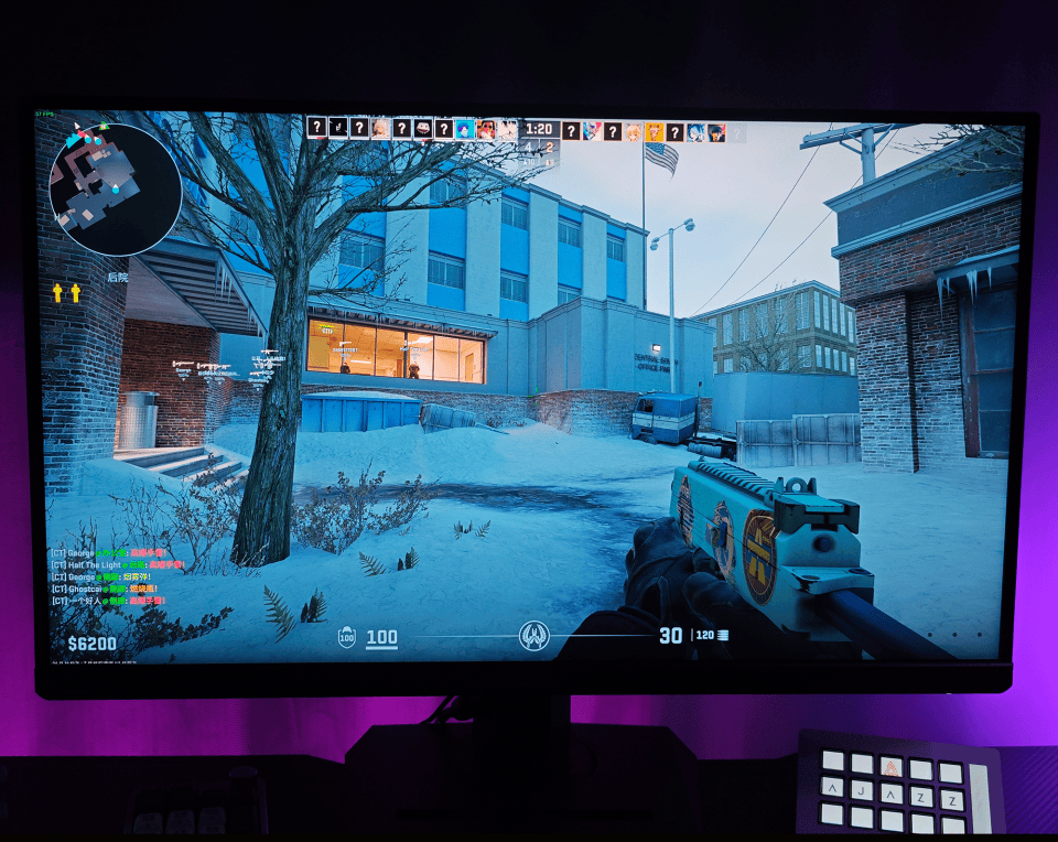体验完4K 160Hz后,轻轻点一下双模切换热键,等待几秒钟,显示器切换成1080p 320Hz模式,这里给大家科普一个冷知识:在打CSGO游戏比赛时,顶级高手往往不会用4K分辨率,而是选择FHD1080p或更低的分辨率,所以这个一键切换双模真的是非常方便而且实用。进入游戏后,1080p的清晰度肯定是不如4K,但画面色彩表现仍然十分优秀,画面丝滑流畅度更胜一筹。1080p的画面视野相对小一点,玩家可以更加专注核心区域,320Hz超高刷新率加上1ms疾速响应,操控感堪称随心所欲,处处先人一步,大大提升了我的爆头率,当与敌人在转弯处紧急遭遇时总能比他们快一步开枪,天下武功唯快不破,玩游戏也是如此,320Hz高刷就是我的制胜法宝。