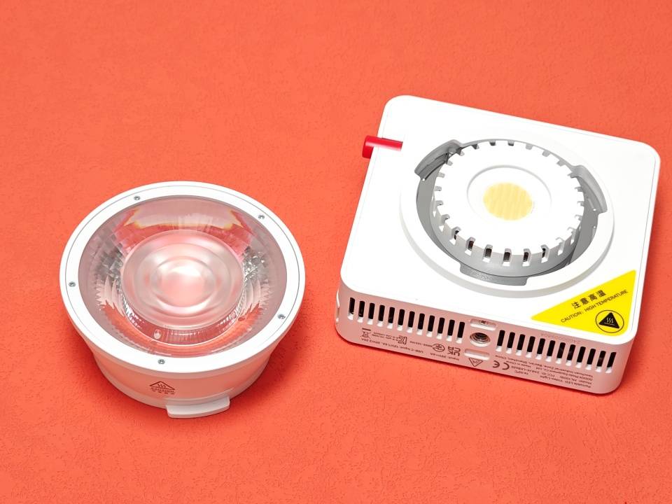 透镜反光杯造型十分小巧,纯白色机身与神牛ML100Bi非常搭,外壳采用了轻质塑料,携带、手持都没有任何负担。
