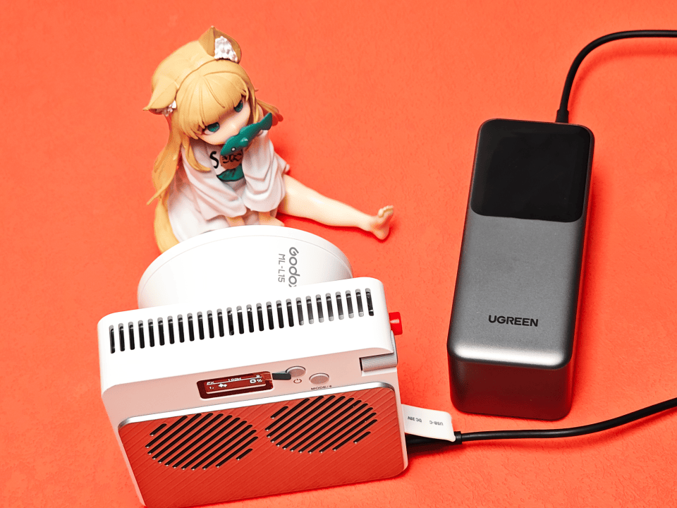 2万毫安的大容量足够满足我们日常户外拍摄需求了,在家里如果是拍一些小静物我们也可以不使用支架,直接将灯与绿联能量湃Pro 130W充电宝相连即可轻松开拍。