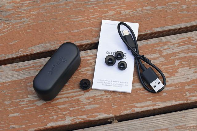 “全家福”一览:除耳机本体外,另有Type-C口充电线和两对儿硅胶耳套。纸质品方面,则是一份详细的产品说明书。