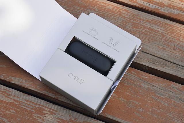 撕开“拉链”后,首映眼帘的便是黑色小巧的充电舱。而其余配件则“隐藏”在下方的独立小盒内。内衬卡上有生动直观的图示,便于小白用户了解。