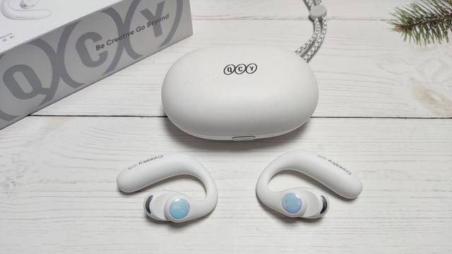 QCY Crossky GTR耳机的充电盒设计灵感来自自然界的鹅卵石,以纯净白色为主,点缀高级灰和米色斑点,营造温馨家居感。哑光处理和颗粒质感斑点设计,呈现低调优雅,触感顺滑。其可伸缩运动挂绳设计,增添时尚感,便于携带。耳机采用开放式悬挂设计,前端集扬声器、麦克风、触控面板于一体,中部挂耳部分根据人体工程学设计,贴合耳朵轮廓,提供无感佩戴体验。转轴设计灵感源自无人机旋翼,可旋转90°,适应不同运动场景。通话方面,虽无主动降噪,但双耳四麦克风系统确保通话清晰。定向音频技术和防漏音处理加强隐私保护。蓝牙5.3技术保证稳定连接和低能耗,耳机单次续航6小时,搭配600mAh充电盒,总续航24小时,满足一周使用需求。