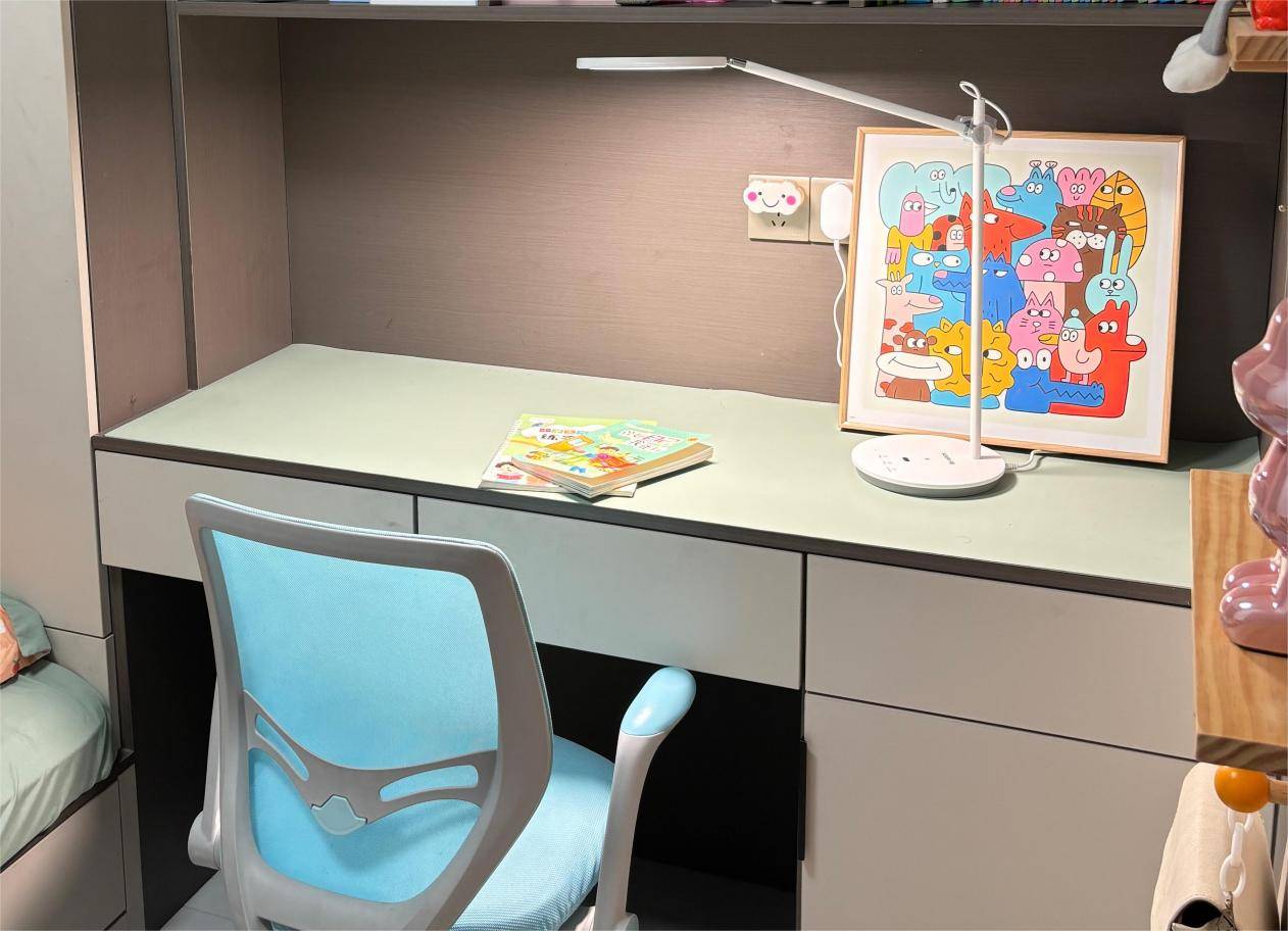 书客L1还获得6家全球权威检测认证,达到Ra98高显色、无频闪、抑制眩光、RG0豁免级无蓝光的要求,具备45分钟定时休息、夜灯模式、手扫无极调光多个提升使用体验的功能。更运用OCLT光透镜设计出360度交替照明的光路,消减手部阴影,并且182CM²的大面积光源,打造出2米全桌面的自然光,即便摆放在宿舍桌子上的最左侧,也能够将整张桌子给照亮,也能够让用眼更舒服。