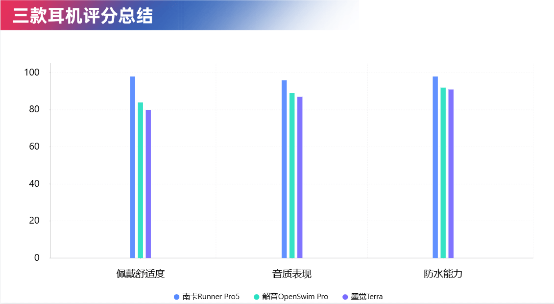 总结来说,当选择耳机时,建议综合考虑佩戴舒适度、降噪效果、音质和防水能力,以找到最适合自己的产品。根据我的测评,南卡Runner Pro5在整体表现上优于其他两款耳机,但墨觉Terra和韶音OpenSwim Pro在防水性能方面也表现出色,大家可以根据具体需求做出选择