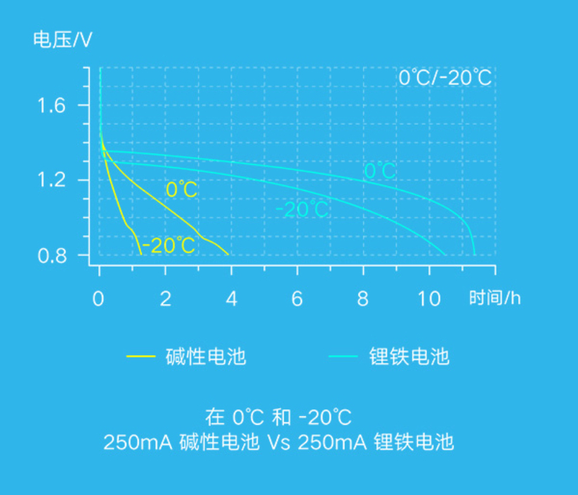 据官方介绍,米家超级电池,专门为多变的环境研发,即使在零下20摄氏度,依然很稳定、持续的供电。在同等放电环境下,米家超级电池零摄氏度的放电时间可以达到碱性电池的2.6倍。零下20摄氏度可以达到碱性电池的7.4倍,可见稳定效果明显。