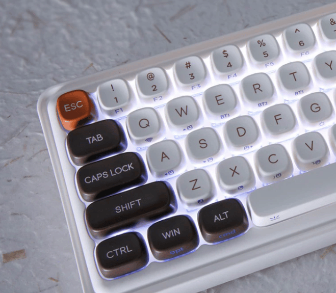顔值极高的一款机械键盘,键帽没有采用不实用的圆点设计,而是对键帽的四个角进行圆润的处理,这样子既保持了不错的顔值,同时兼具实用性。