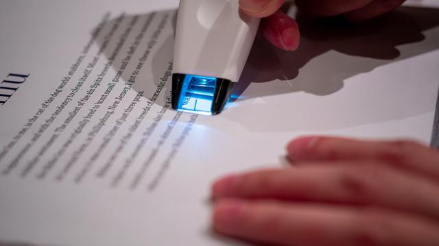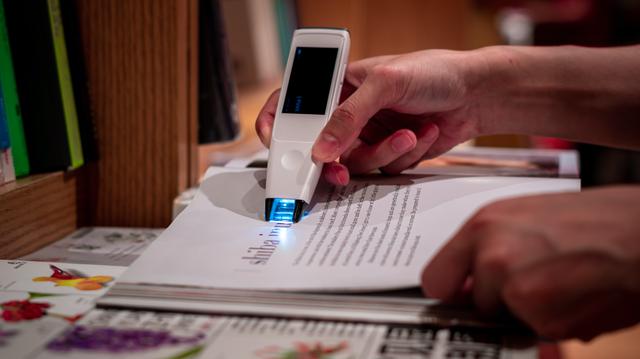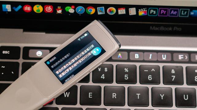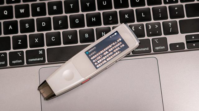 在使用的时候,还有个小技巧可以提升录入的准确率,扫描笔头的前端,有一根细细的线,将这条线在想扫描的英文词汇句子上划过,就可以近乎100%地准确扫描。
