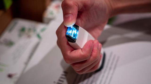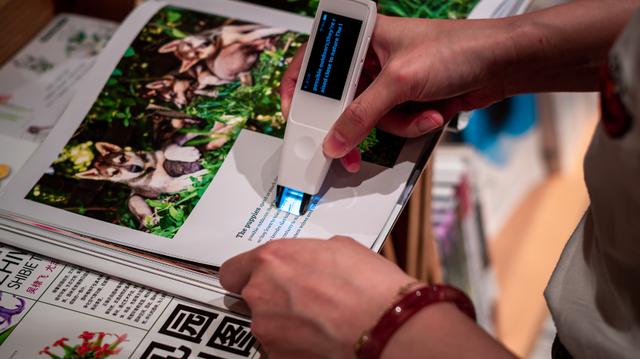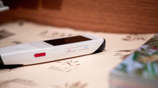 △糖猫词典笔前端是它的扫描头,按压开始亮灯,进入扫描模式